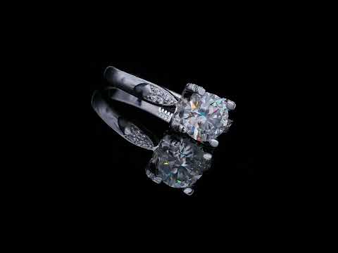 Crafted from the highest quality 14k white gold and featuring a captivating round-cut diamond, this stunning 1.0ct classic diamond ring is set within elegant prongs and accented by round-cut diamonds creating a timeless, luminous and luxurious finish. An affordable alternative to a traditional diamond engagement ring, its elegance and beauty is simply stunning.