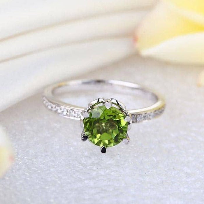 If you want something truly special, then check out this amazing 14k White Gold 1.4ct Peridot 0.14 Ct Natural Diamond Ring. The round cut center stone and side stones are brilliantly faceted to produce a stunning and sparkly finish. Not only is it stunningly beautiful, the quality is also high and the price is surprisingly affordable. Get your hands on this dazzling piece today and start looking chic!
