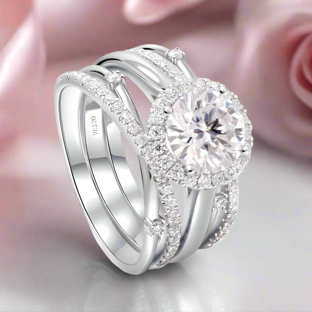 Present her with an unforgettable symbol of your commitment with this dazzling 14k white gold insert engagement ring set. At its center is a 2.0ct round cut diamond set in a luxurious band of stones, giving it an elegance that is certainly worthy of your love. Thanks to its affordability, high-quality materials, and craftsmanship, this is a ring to treasure for life.