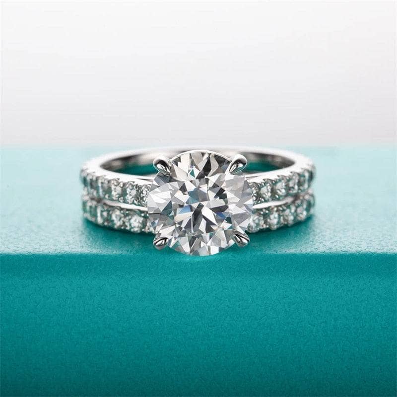 This Classical 3ct Certified Moissanite Engagement Ring Set crafted from luxurious 14k white gold is polished impeccably to create an enchanting look. Its round-cut diamond centerpiece is surrounded by round accent stones for an eye-catching glittering effect. This sophisticated and cost-effective ring set will make your special day a memorable one due to its remarkable elegance and superior quality.