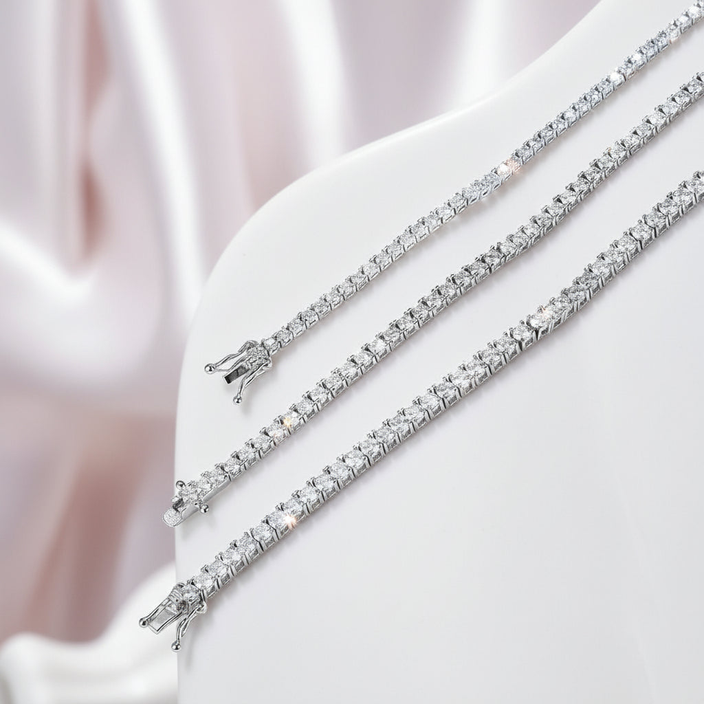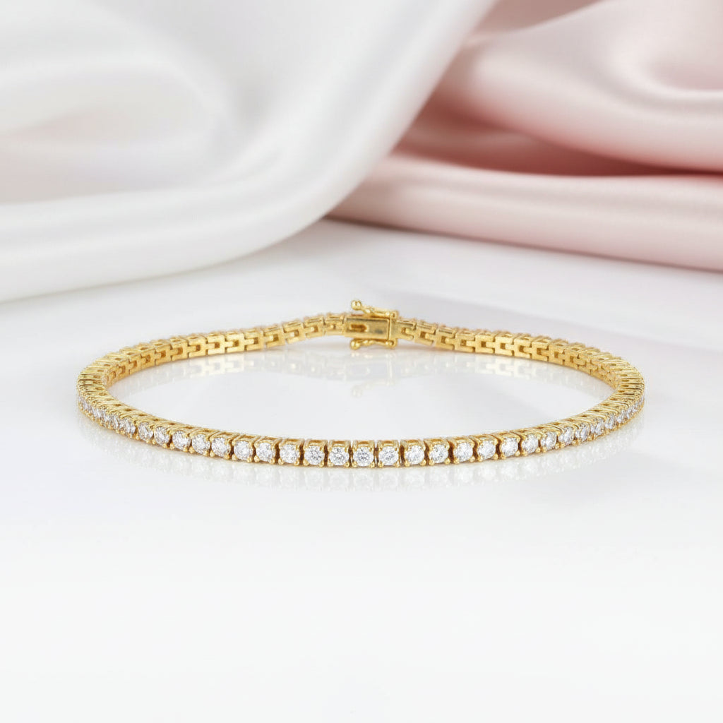 Shine bright with our Solid 18k Gold Certified Moissanite Tennis Bracelet by Black Diamonds New York. The combination of exquisite round cut diamonds and high-quality craftsmanship makes this bracelet a must-have accessory. Elevate your style with this gorgeous piece that exudes sophistication and elegance. Discover luxury that is both stunning and affordable with Black Diamonds New York.