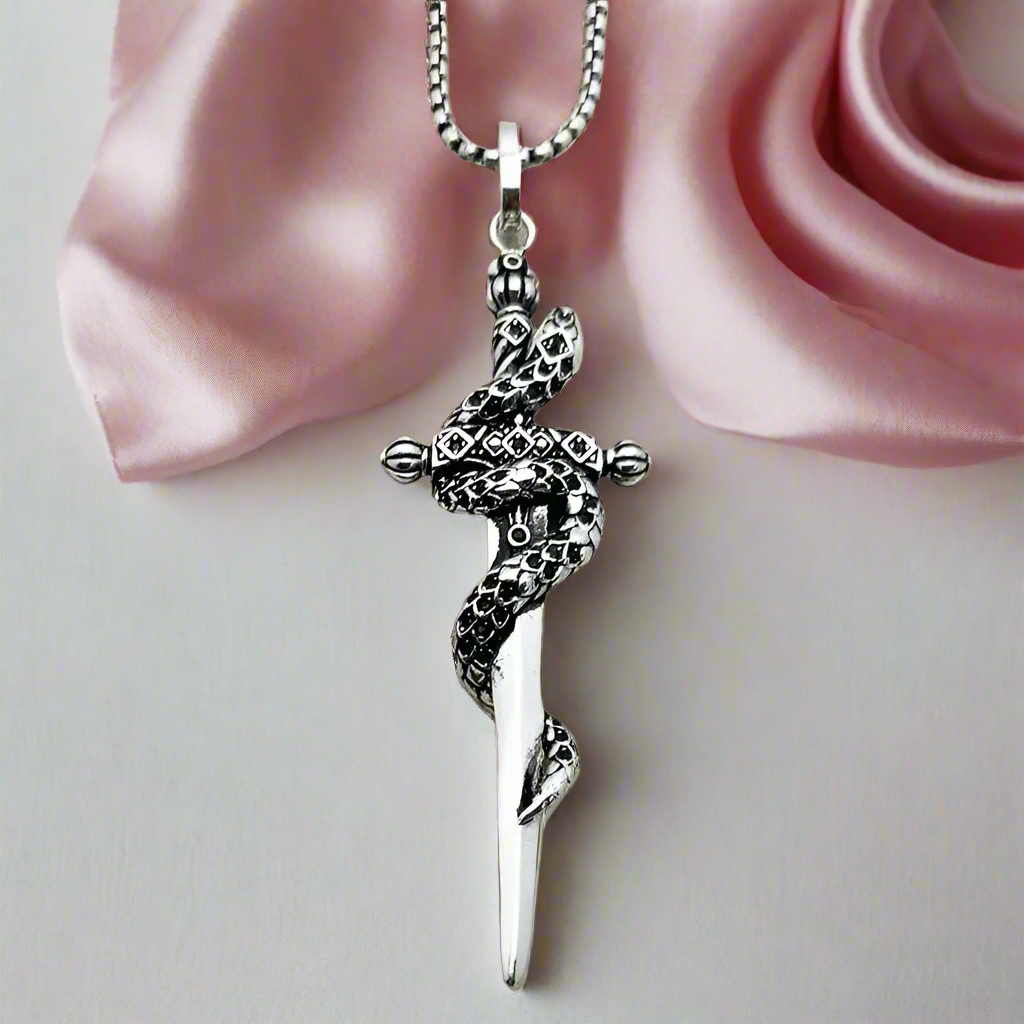 Introducing the ultimate in punk fashion - the new European Style Gothic Sword Link Chain Necklace from Black Diamonds New York. Crafted from the highest-quality 925 sterling silver and accented with the sparkle of diamonds, this Gothic-inspired accessory is uniquely designed with a gothic sword, crown, skull, and serpent design that will give you a bold, yet affordable look. Rock the streets in style with a piece from Black Diamonds New York.