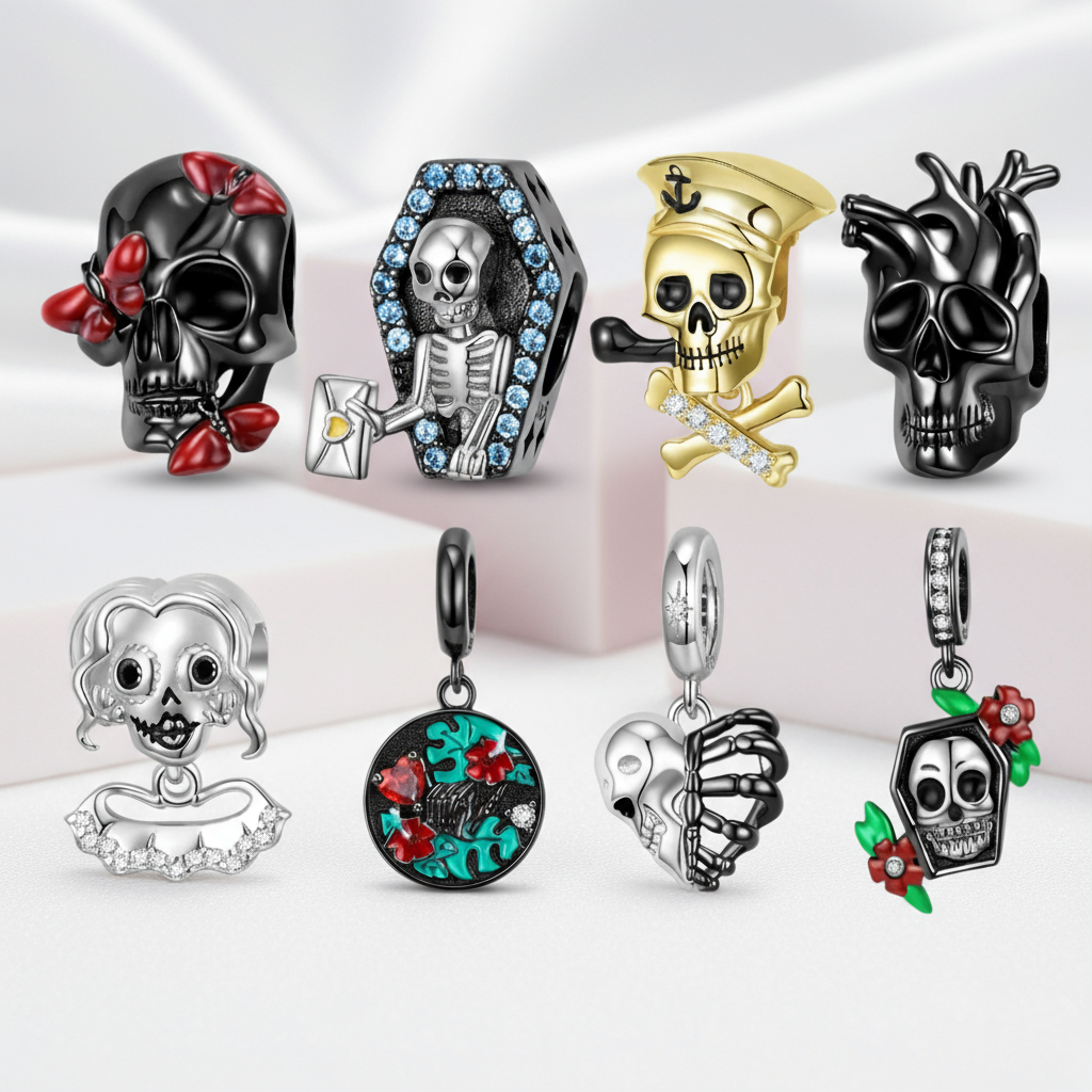 Crafted from high-quality 925 sterling silver and adorned with sparkling created diamonds, these unique beads feature an irregular shape. Elevate your Halloween charm bracelet with the Skeleton Family Charm Series—a must-have for any passionate collector.