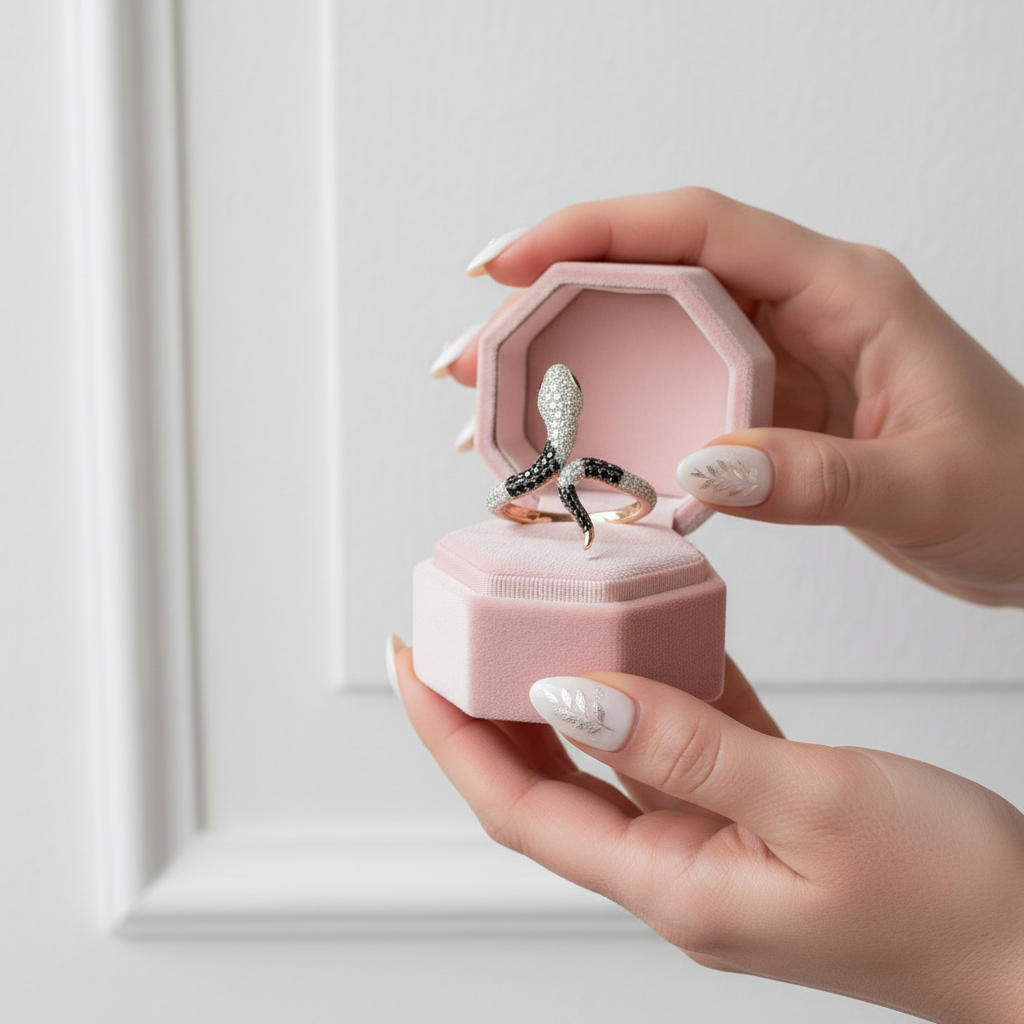 Rose Gold Black Spinel with Diamond Option Snake Ring
