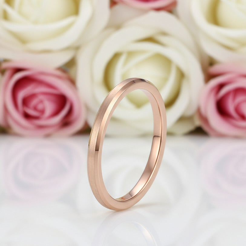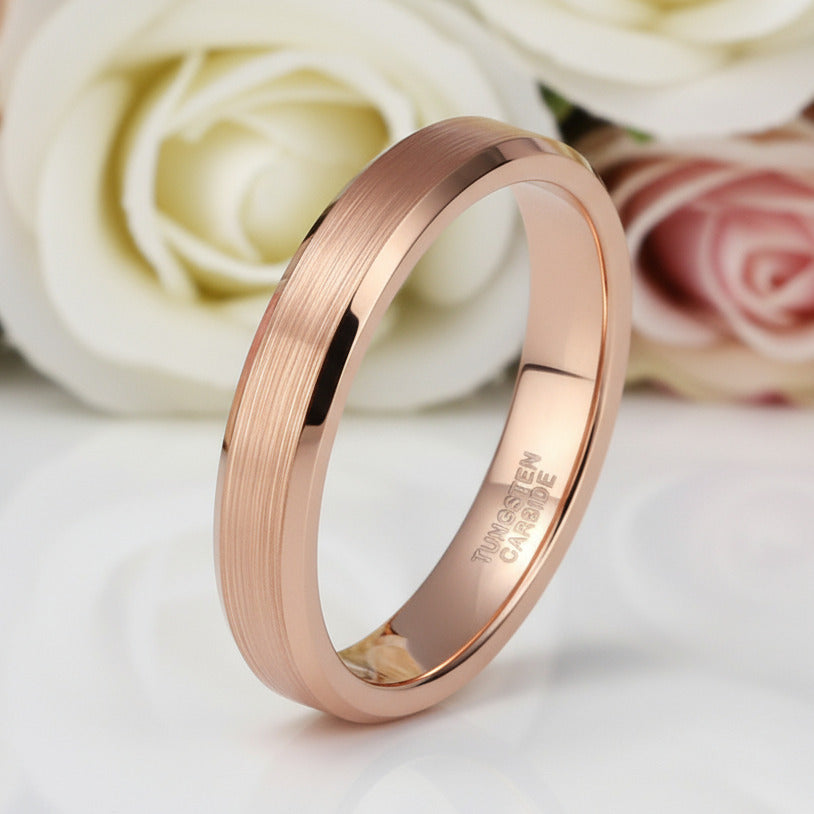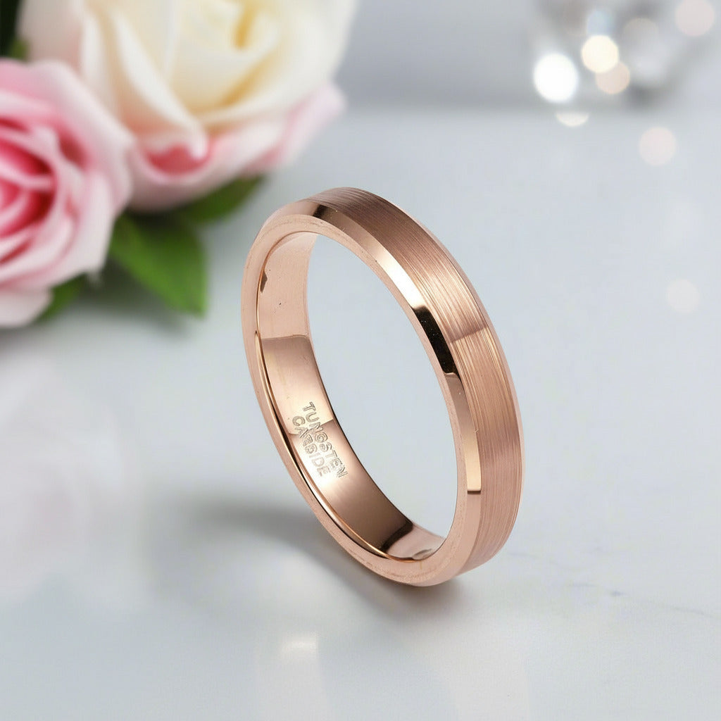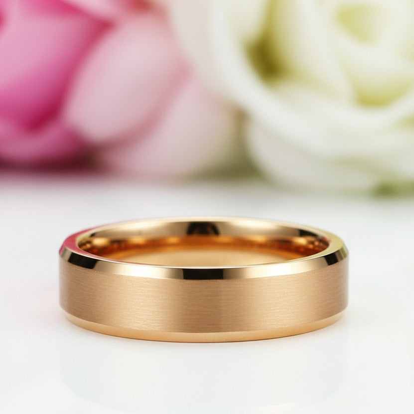 This Brushed Rose Gold Tungsten Wedding Band combines durability with elegant style. Crafted from high-quality, ethically sourced materials, it offers a lasting symbol of your commitment without the high price.