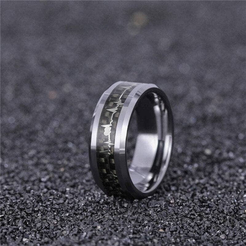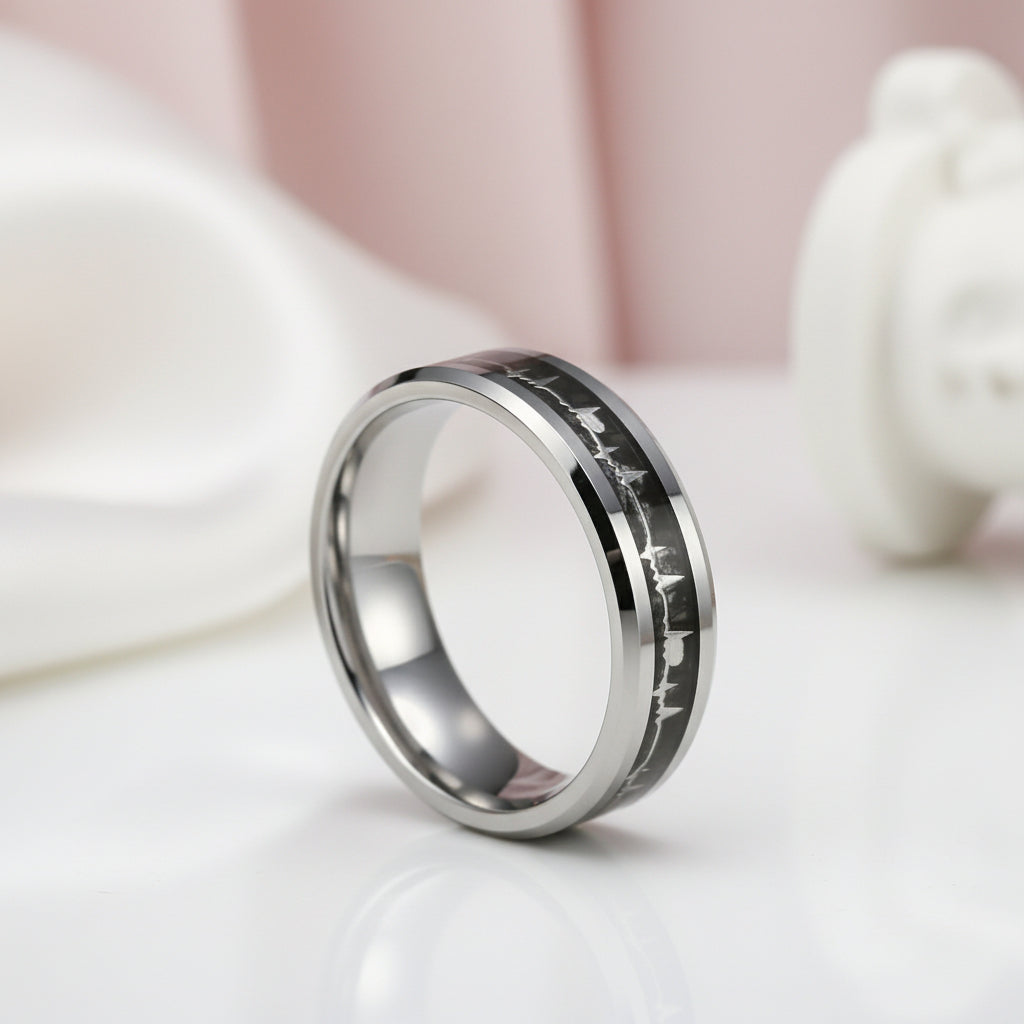 This Heart Beat Inlay Men's Tungsten Carbide Wedding Band is crafted from durable, ethically sourced materials. It offers a unique and lasting alternative to ordinary wedding bands.