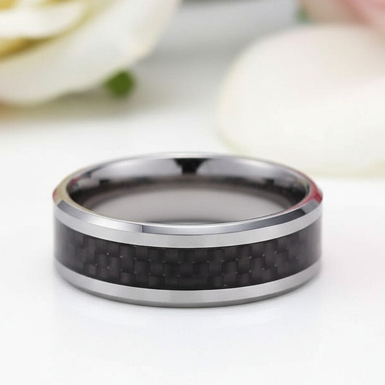 Men's 8mm Tungsten Carbide Wedding Band with Fiber Inlay