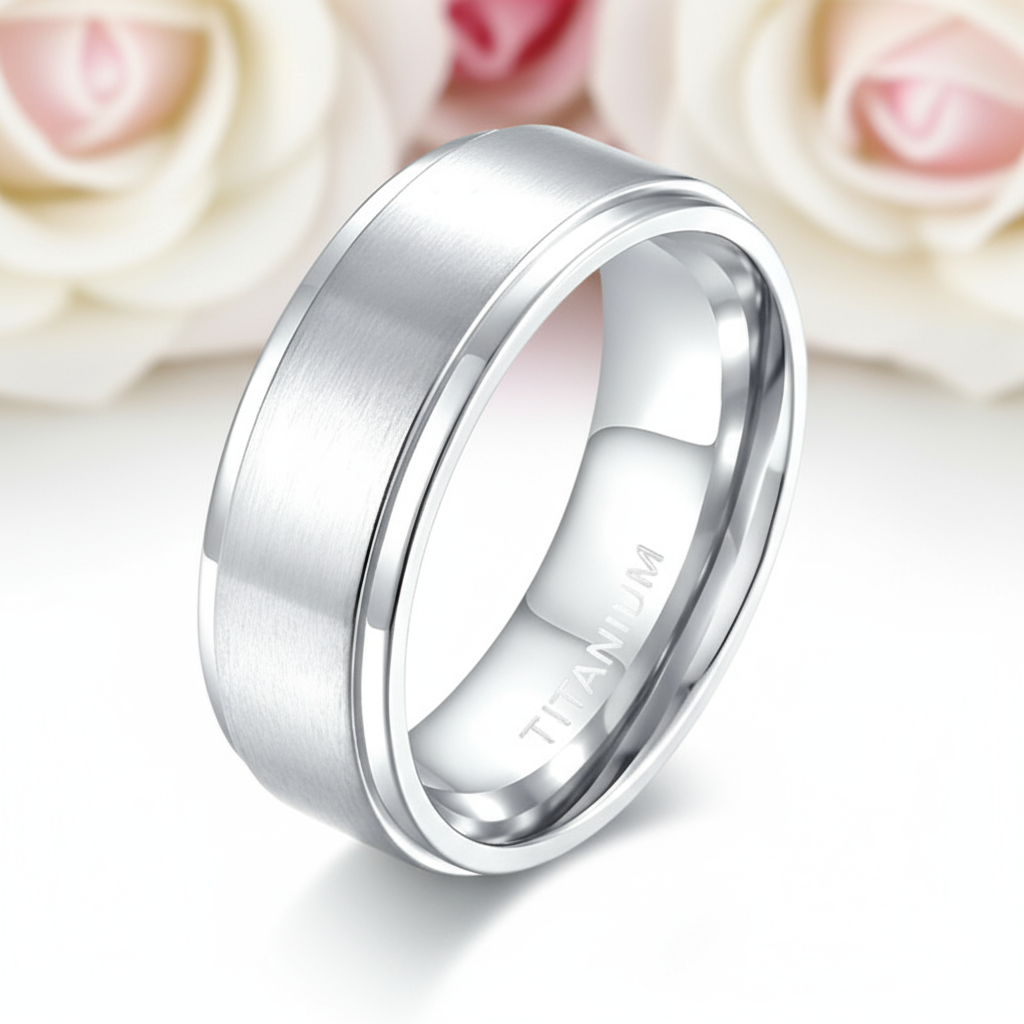 Expertly crafted from premium, ethically sourced titanium for timeless strength and comfort. The sleek brushed silver finish delivers a modern, sophisticated look that lasts a lifetime—without the luxury price tag.