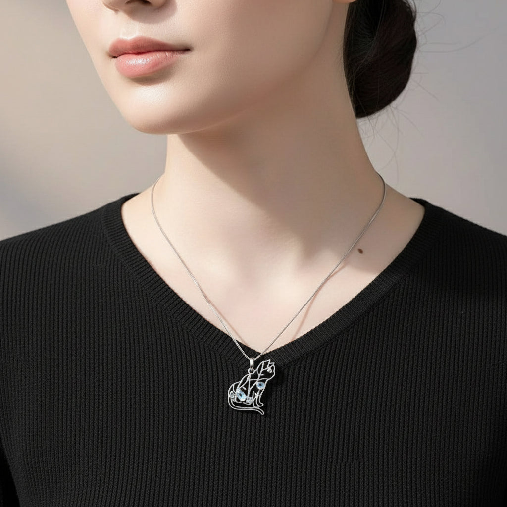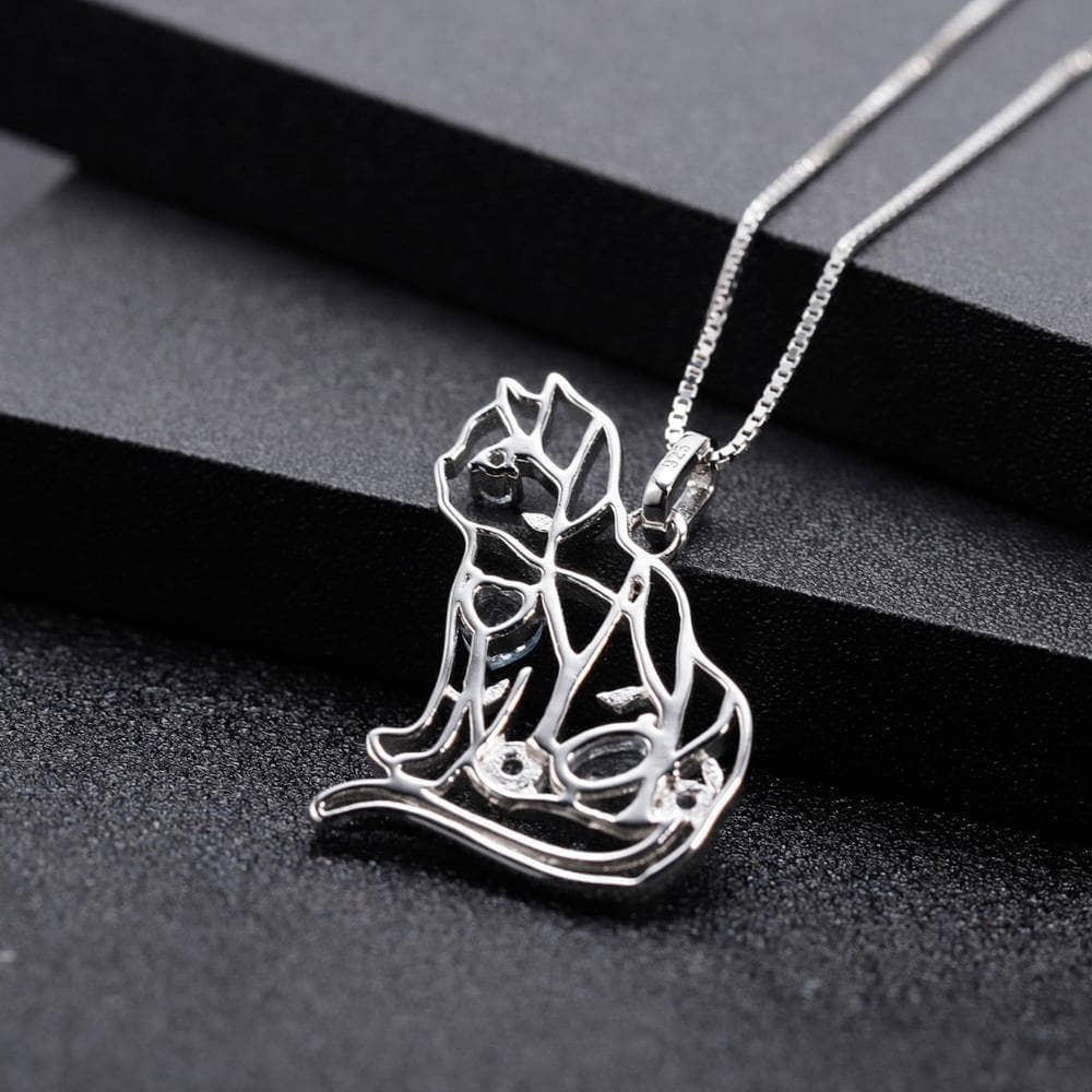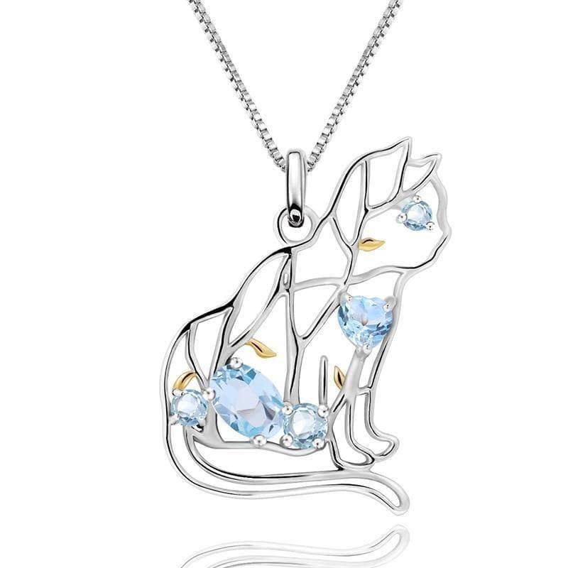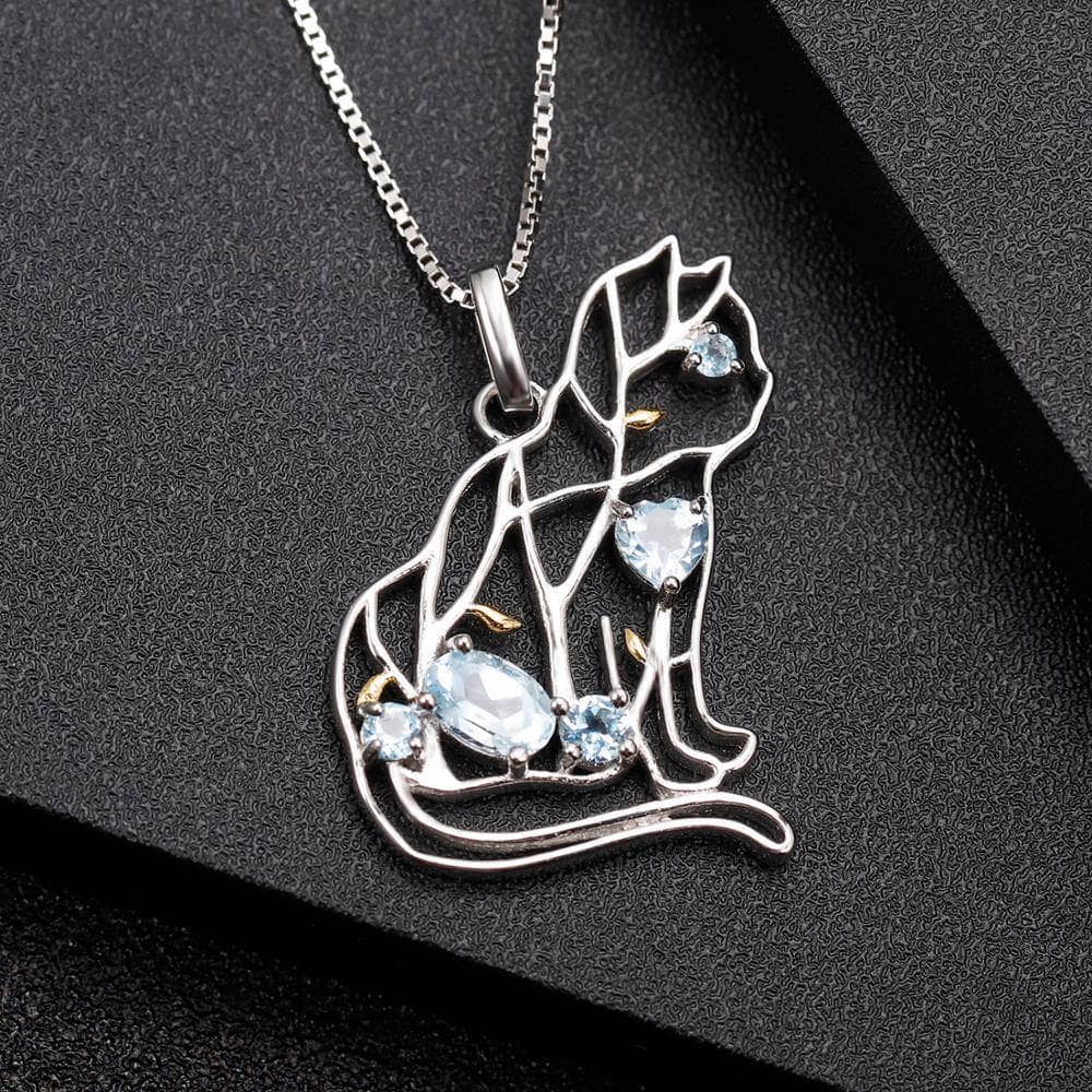 Cat Shape Natural Sky Blue Topaz Handmade Pendant Necklace