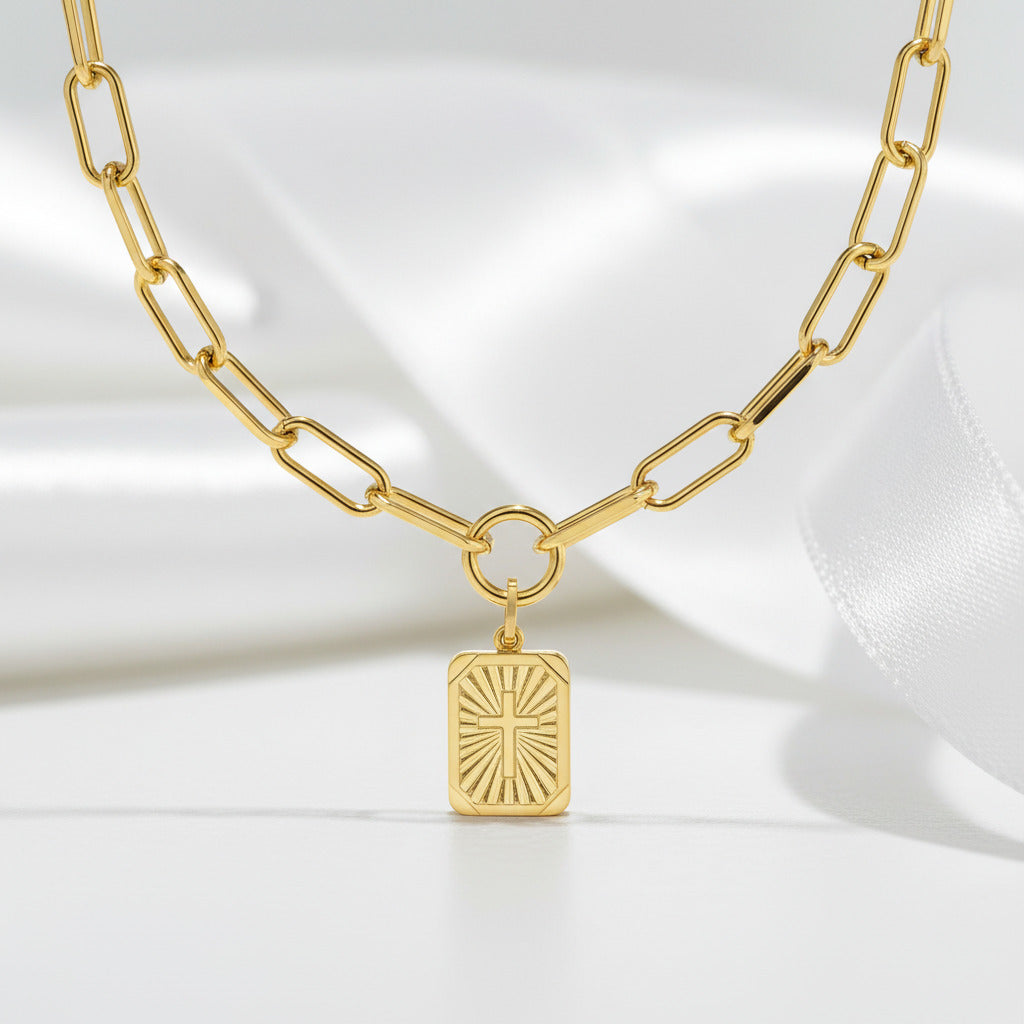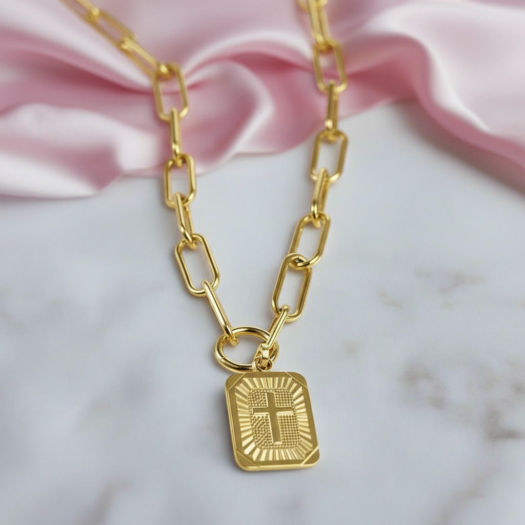 Miami Cross Square Rolo Box Chain Choker Necklace