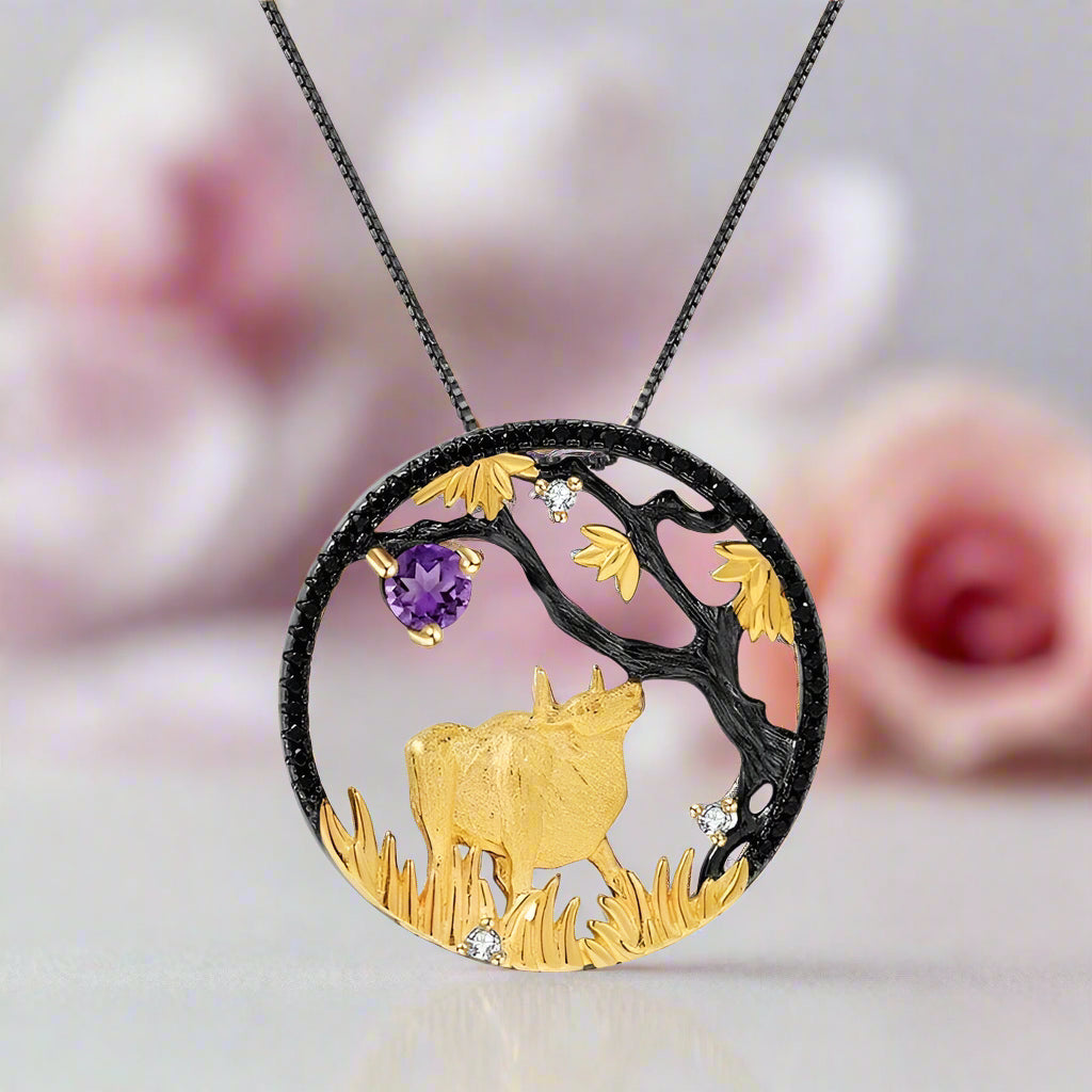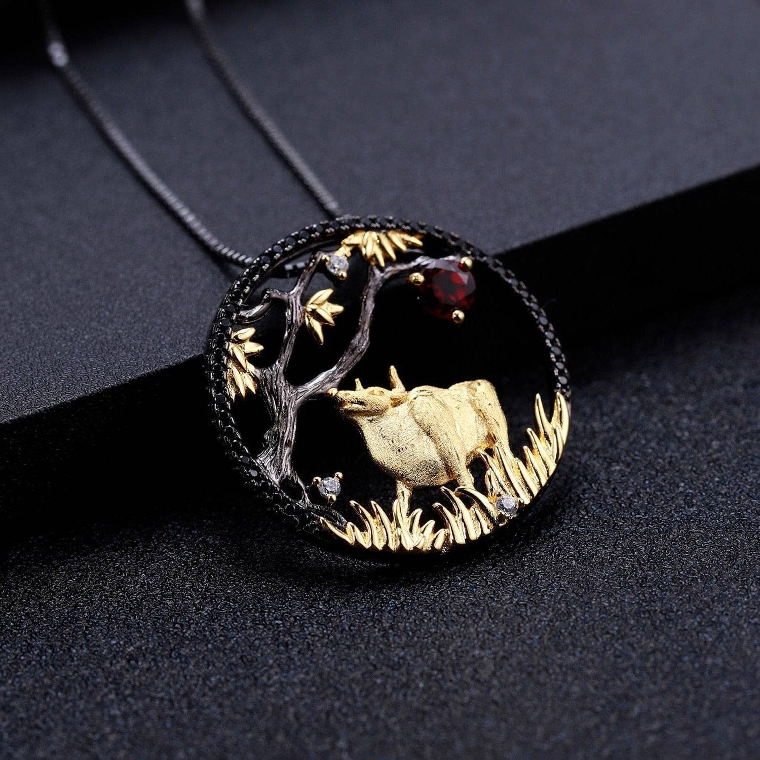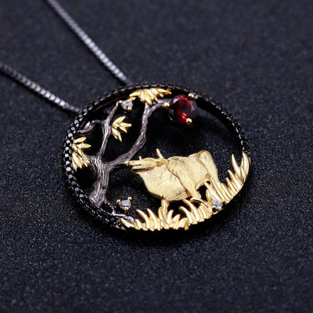 Year Of The Ox-Natural Red Garnet Handmade Patient Ox Necklace