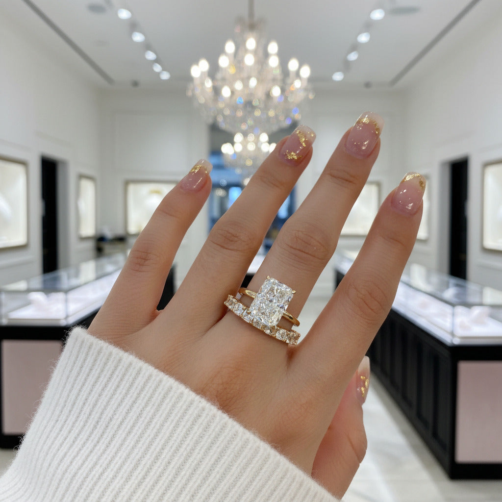 5.0CT Radiant Cut Yellow Gold Ring Set
