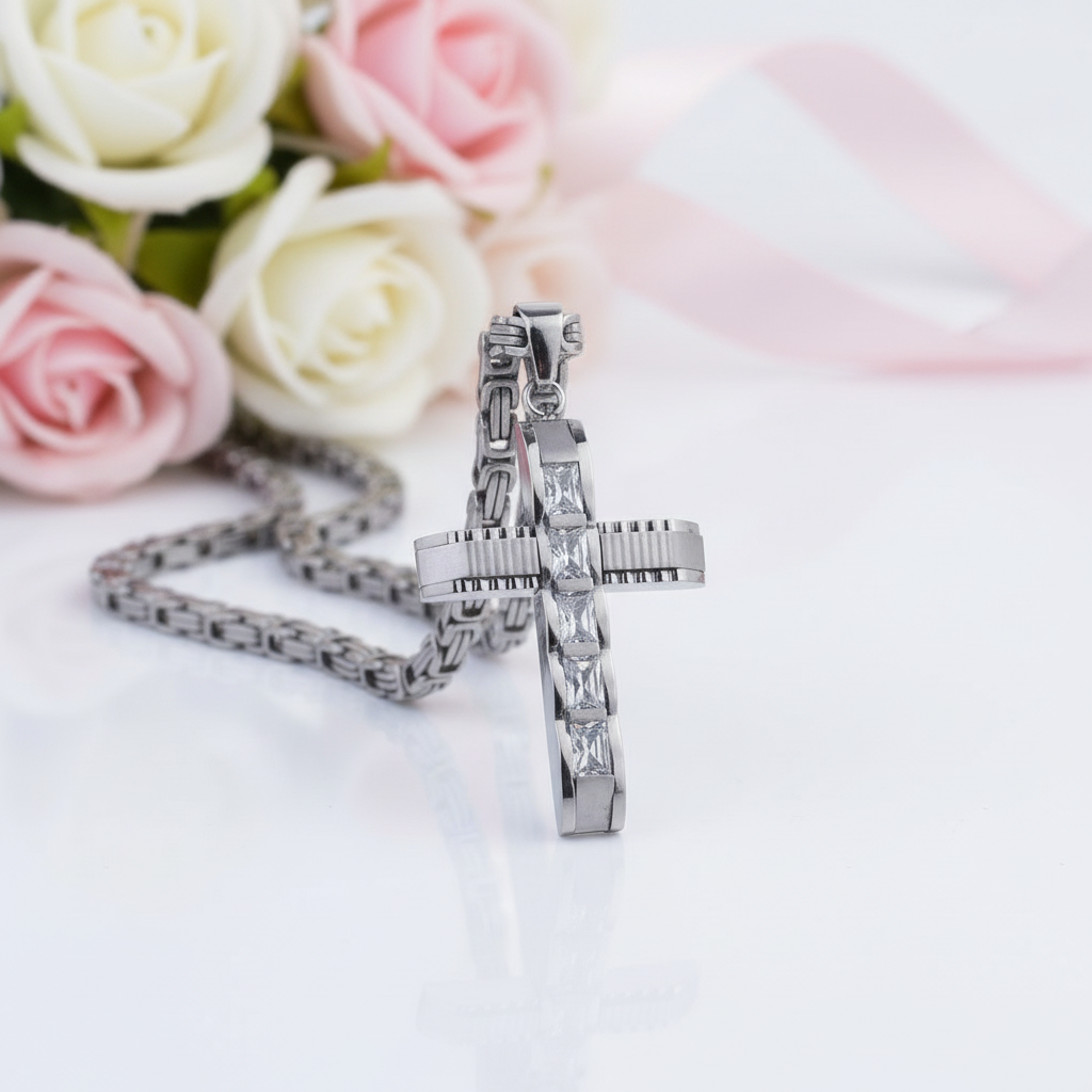 Elevate your style with our Men's Cross Byzantine Chain Necklace by Black Diamonds New York. This stunning piece features a classic cross pendant beautifully intertwined with a high-quality Byzantine chain. Make a statement with this gorgeous necklace that is both affordable and luxurious.