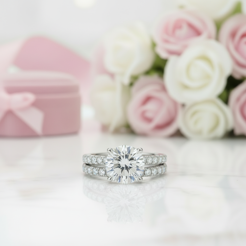 Round Cut Diamond Engagement Ring Set
