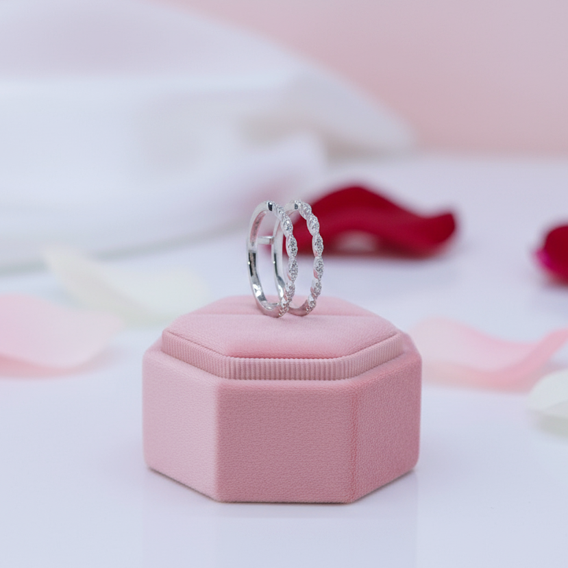 Elevate your round cut diamond ring with this elegant wedding ring enhancer. Crafted from 925 silver with an 18k white gold finish, it offers a secure, adjustable fit and beautifully frames your original stone to amplify its sparkle. A refined yet affordable addition to complement your special day.