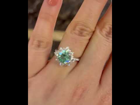 Make a statement with this stunning Snowflake Design Halo Round Cut Cyan Blue Certified Moissanite Stone Engagement Ring. The magnificent halo design crafted with 14k white gold and round-cut moissanite stone comes together to create a timeless beauty sure to make your special moment complete.