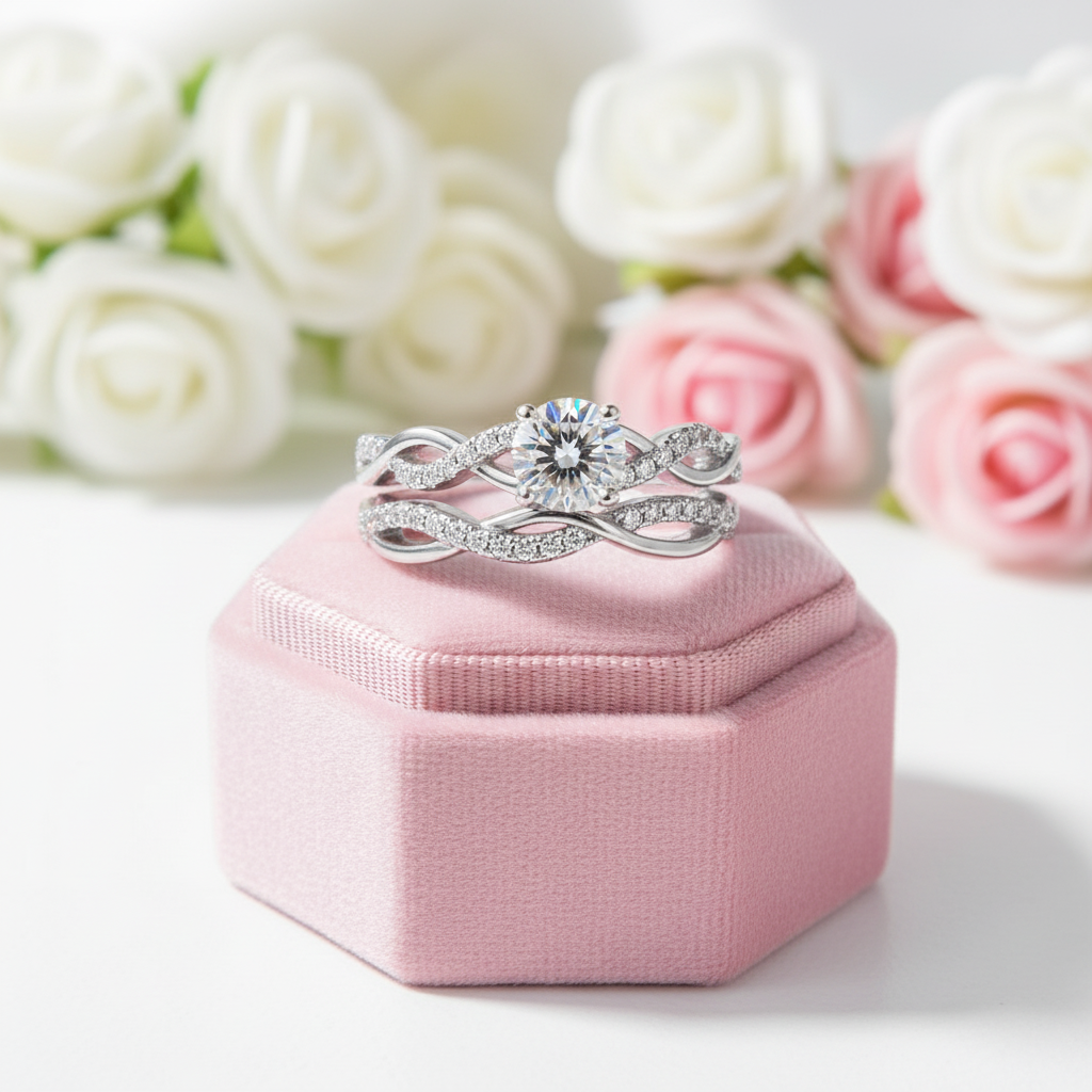 1.0 Ct Round Cut Diamond Twisted Engagement Ring Set