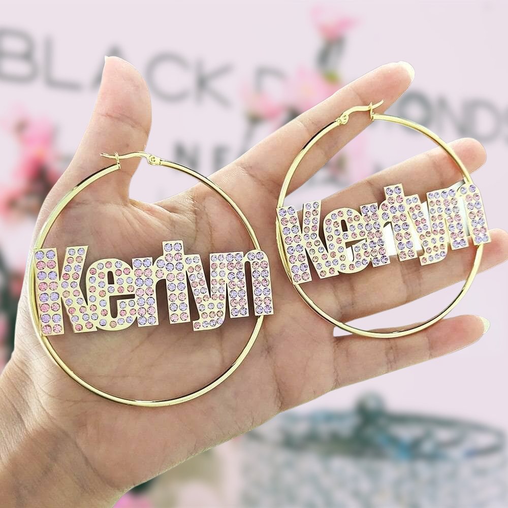 Add a touch of elegance to your look with our Custom Name with Diamond Alternative Hoop Earrings from Black Diamonds New York. These stunning earrings are the perfect accessory for any occasion, whether you're dressing up or keeping it casual. Made with high quality materials, these earrings are not only gorgeous but also affordable. Spoil yourself with these precious earrings that will make you shine wherever you go.