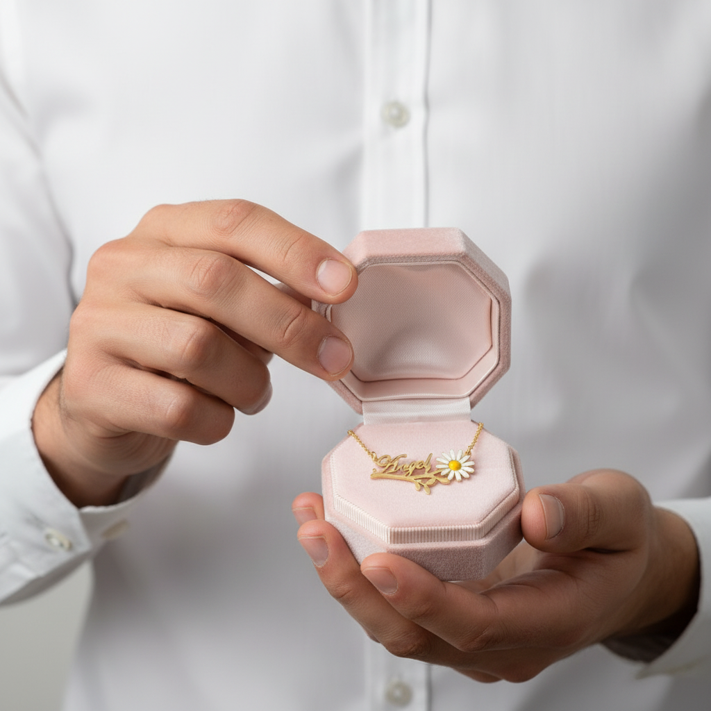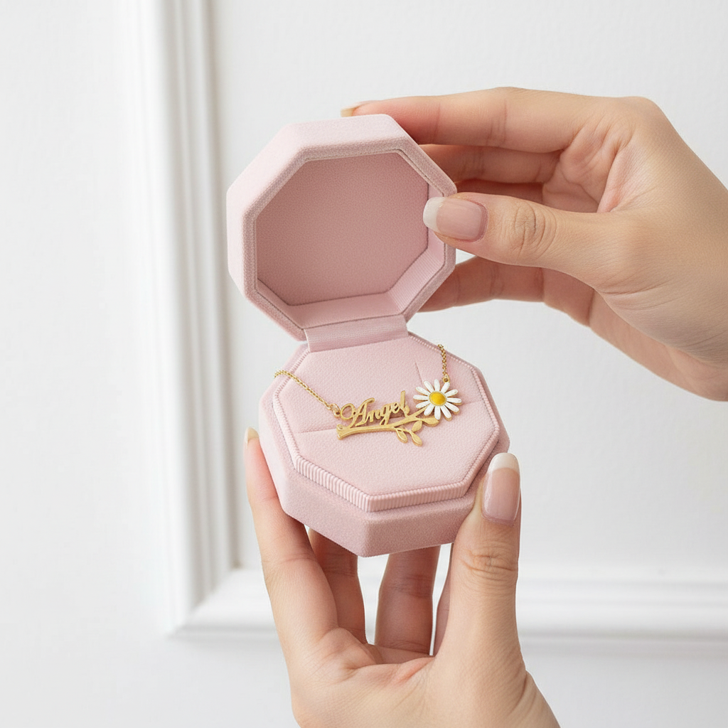 Crafted from stainless steel with your choice of silver, gold, or rose gold plating, this Daisy Flower Personalized Necklace features a pendant measuring 30mm by 40mm. Each piece is meticulously made, with a production time ranging from 6 to 20 business days, offering a refined and elegant accessory tailored just for you.