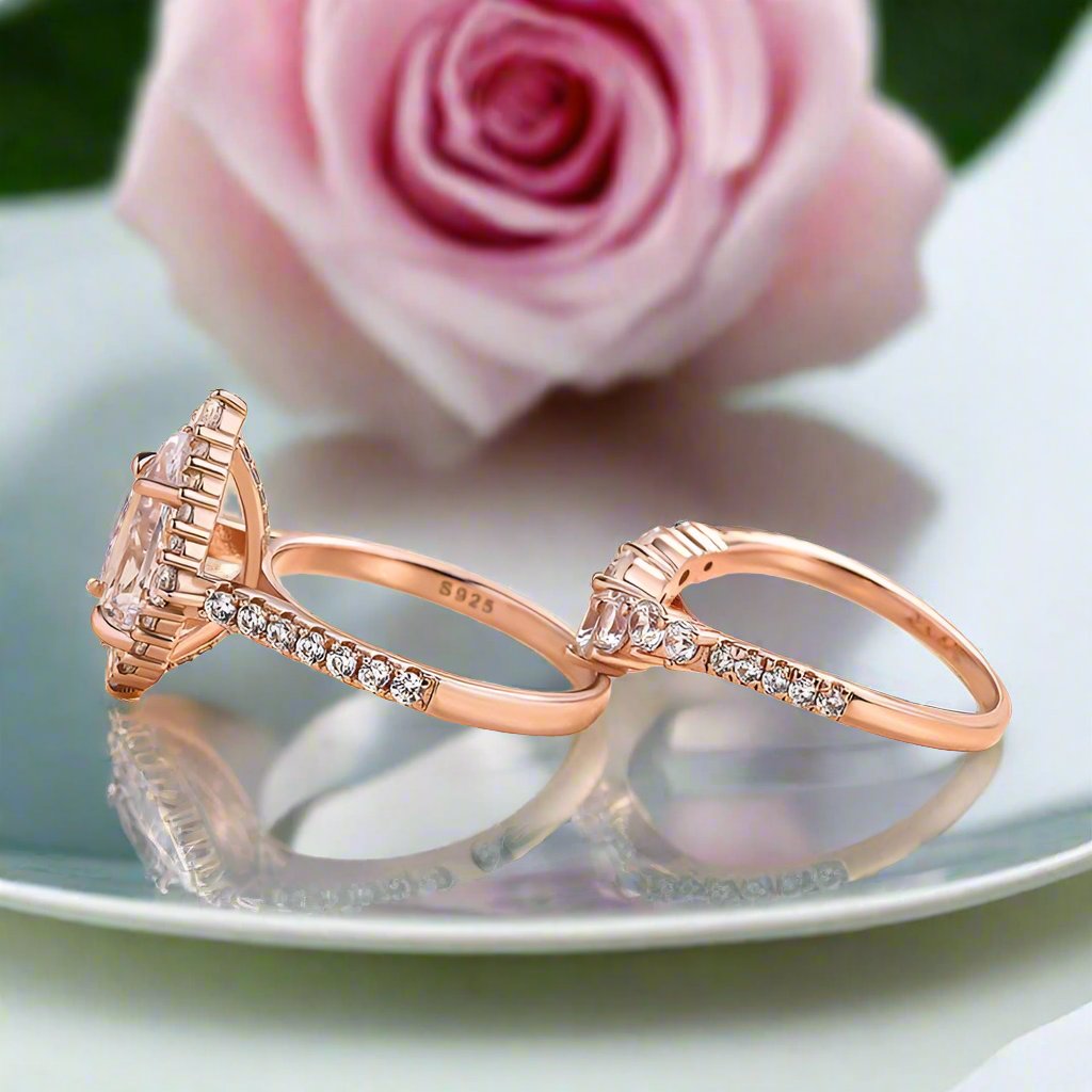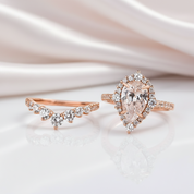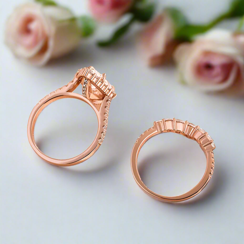 Elegant Rose Gold 2.2 Carat Halo Pear Cut Bridal Ring Set