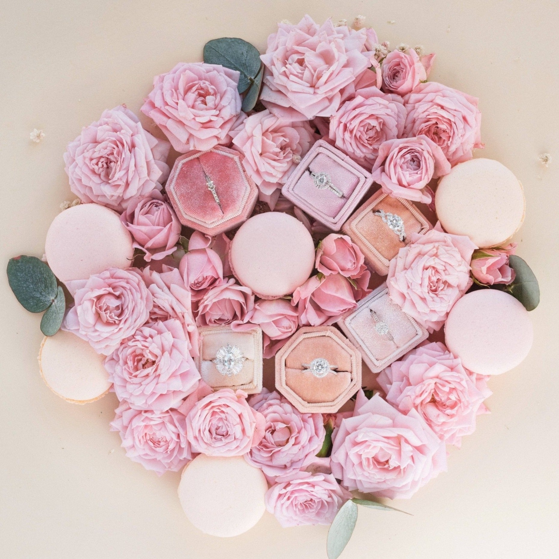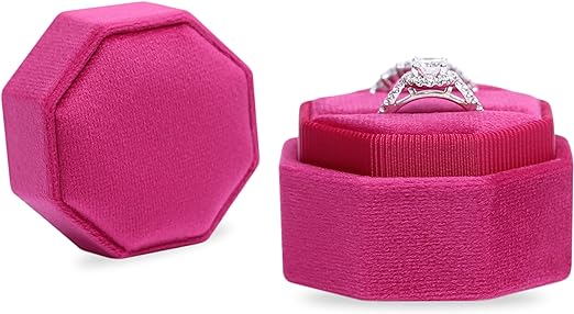 Stylish and fancy octagon-shaped velvet ring boxes are guaranteed to make any simple occasion extra special! Well-made. High-quality velvet. Perfect for photoshoots, engagement proposals, weddings, passing down heirlooms, gifting, and all other occasions.
