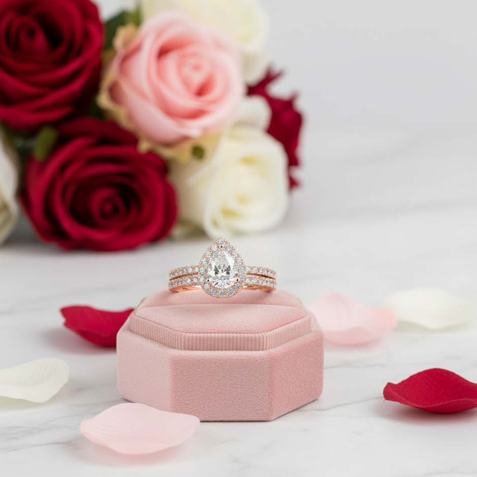 Rose Gold Pear Cut Diamond Engagement Ring Set