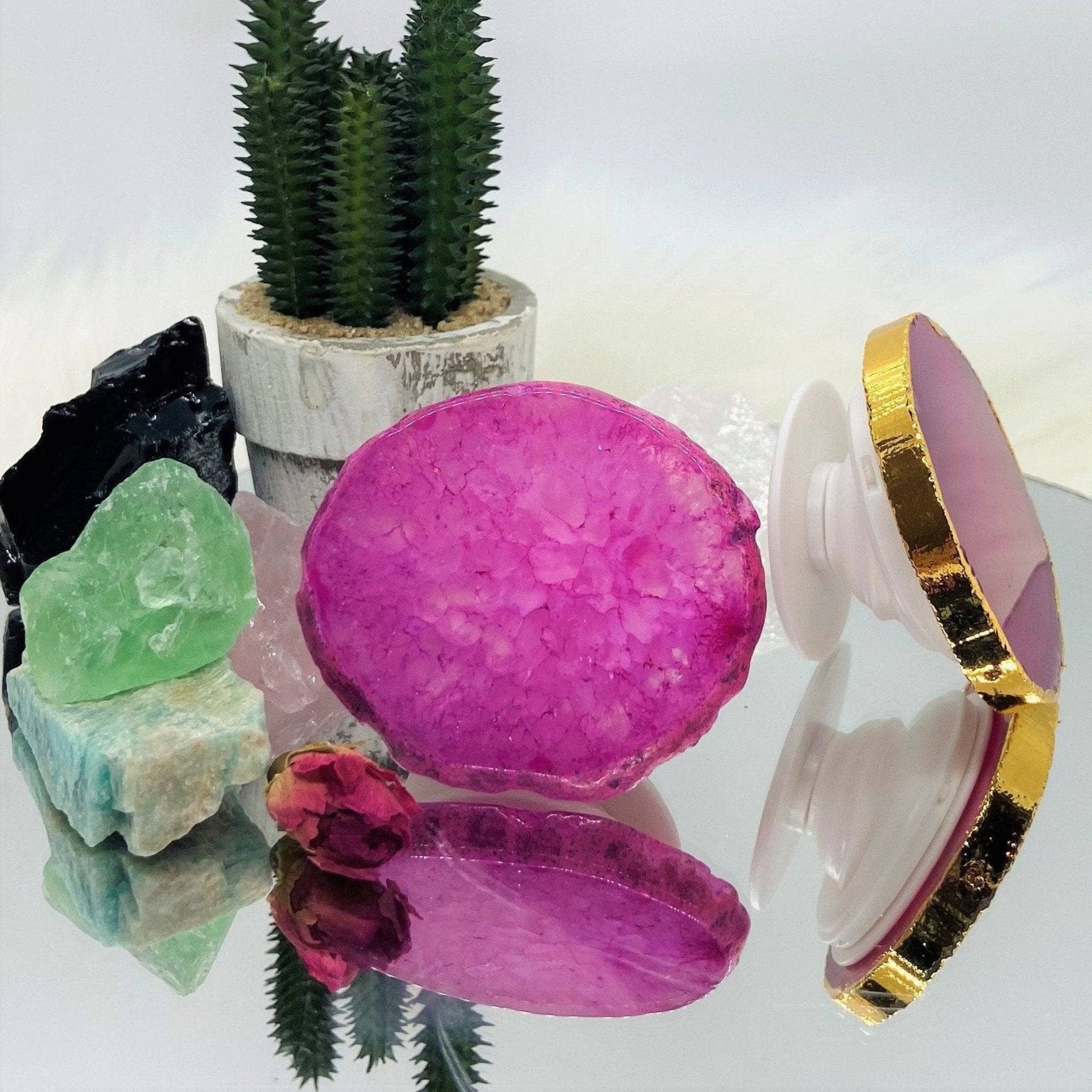 Ruby Quartz Natural Stone Phone Holder- Black Diamonds New York