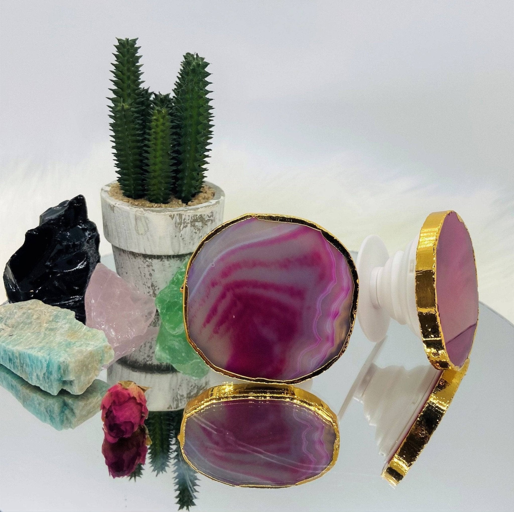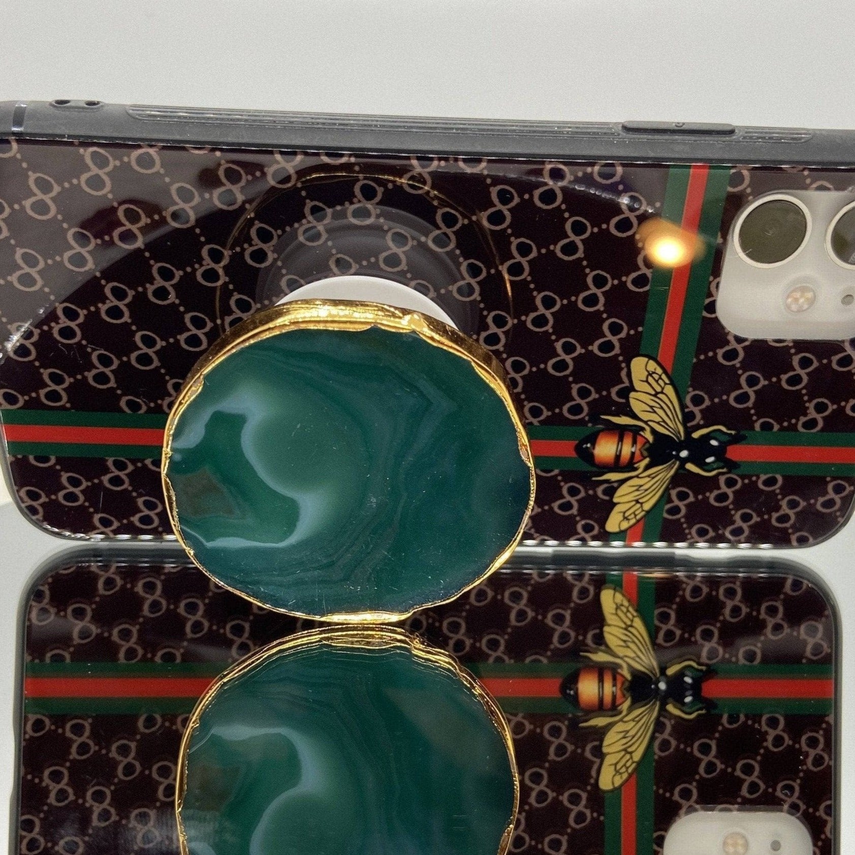 Natural Stones Popgrip WITH gold plating has an approx size of up to 3". Perfect for big phones and iPads.