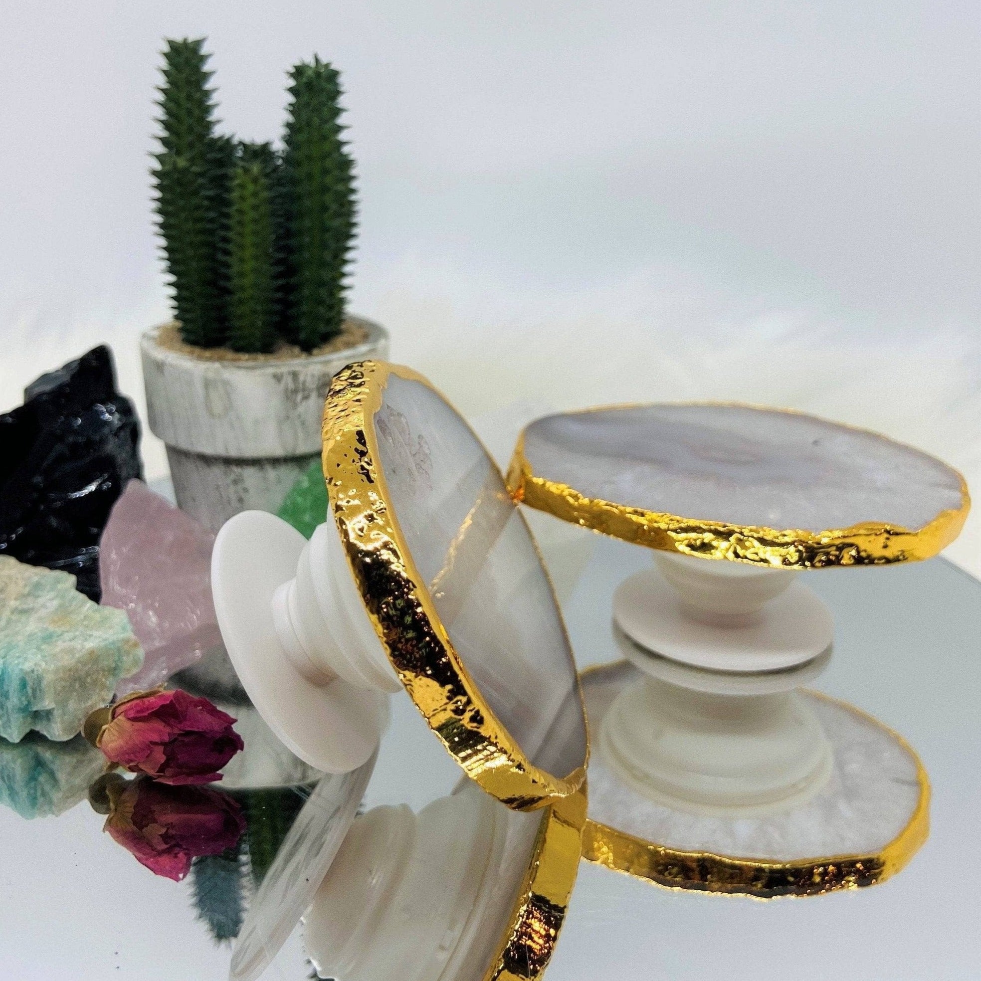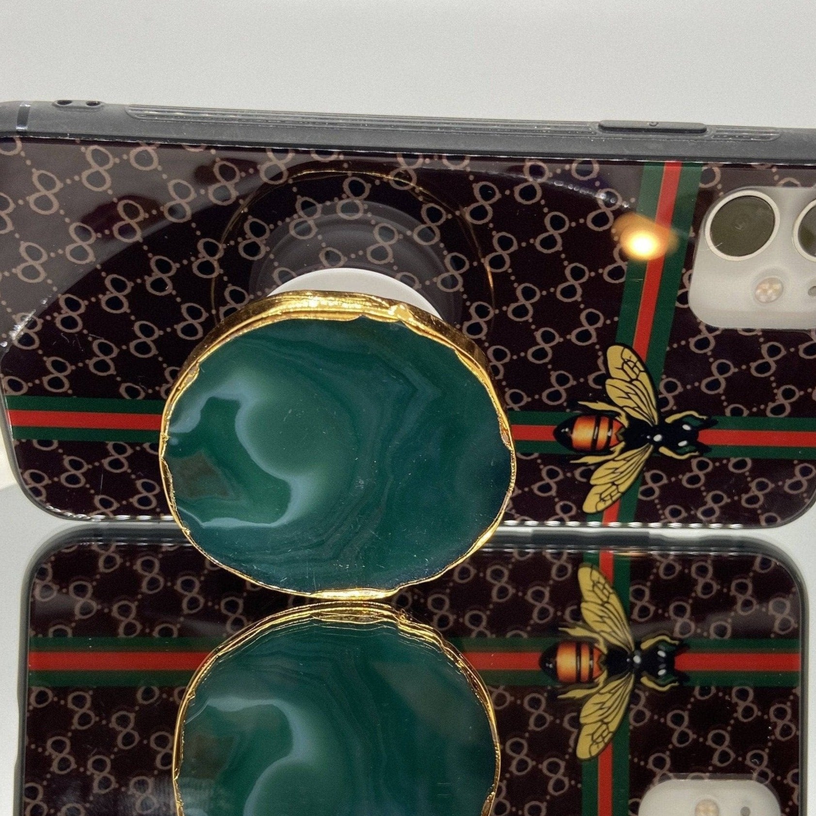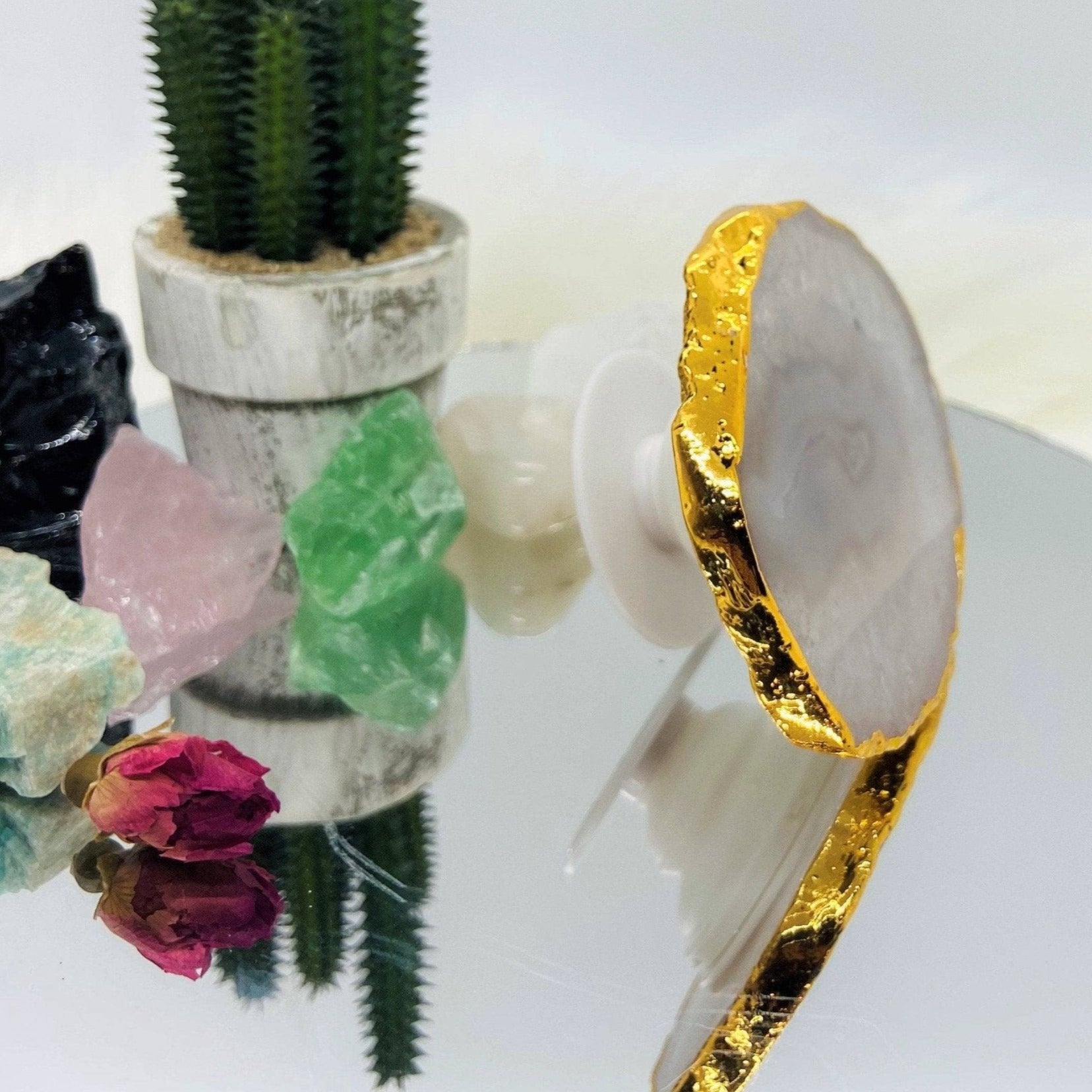 Natural Stones Popgrip WITH gold plating has an approx size of up to 3". Perfect for big phones and iPads.