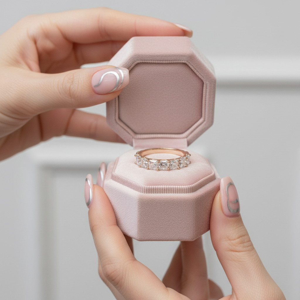 A timeless half eternity design featuring a stunning Asscher cut stone, this ring band combines classic elegance with modern sophistication. The carefully arranged gemstones create a continuous sparkle along the band, making it perfect for everyday wear or as a meaningful complement to an engagement ring. Crafted with precision and attention to detail, this piece celebrates enduring beauty and refined taste.
