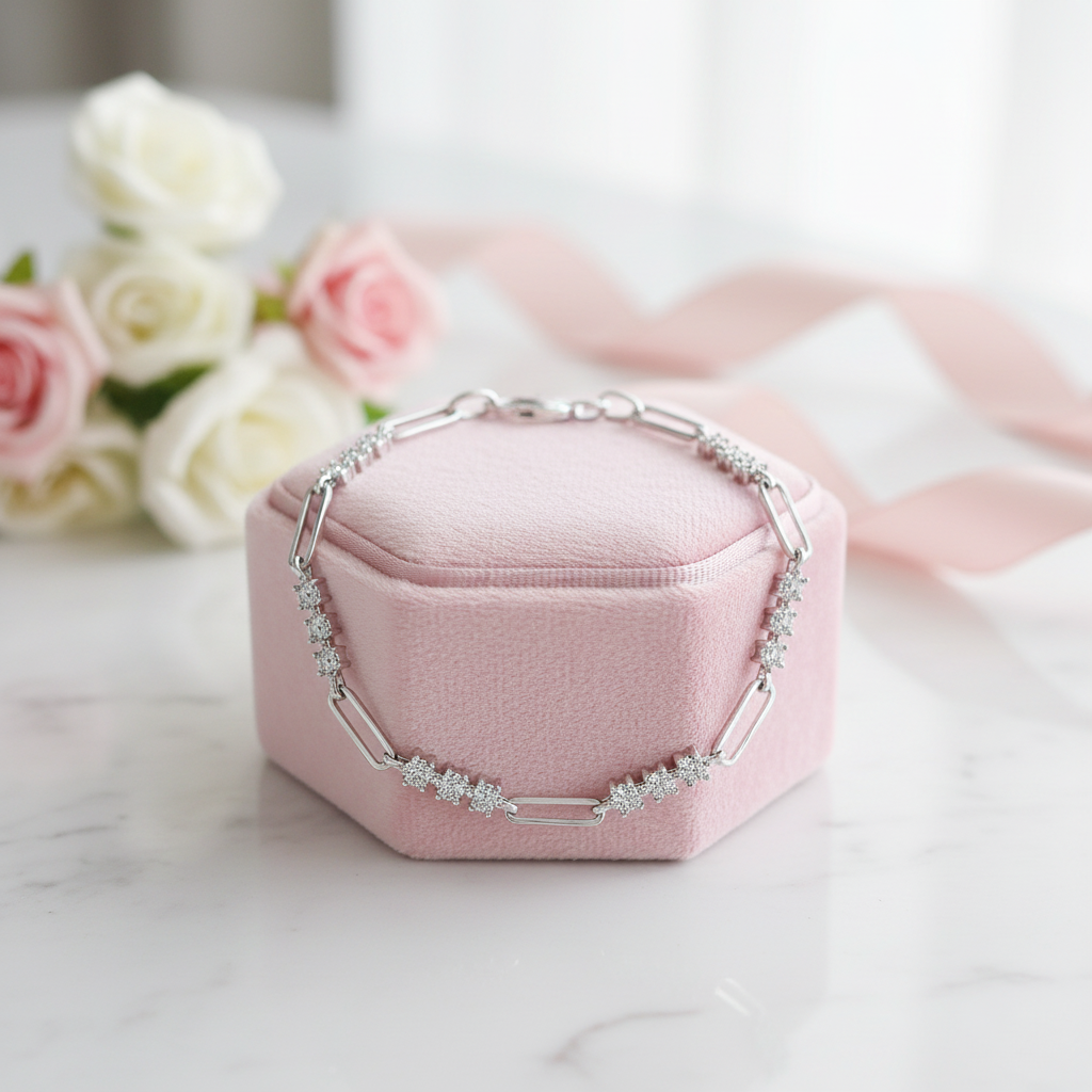 3mm Round Brilliant Cut Diamond Paper Clip Bracelet
