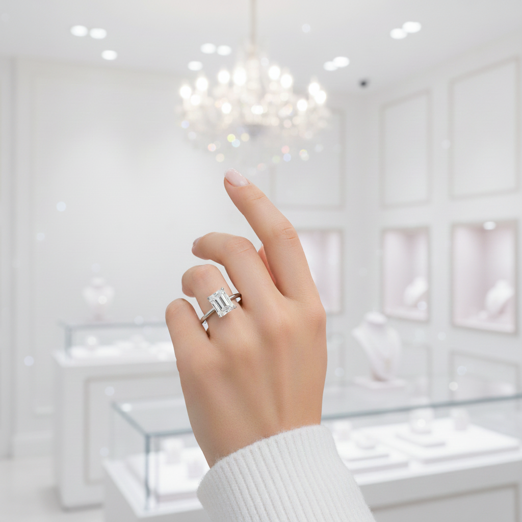 Stone Comparison: Sits brilliantly between Certified Moissanite and CVD Lab-grown Diamonds.