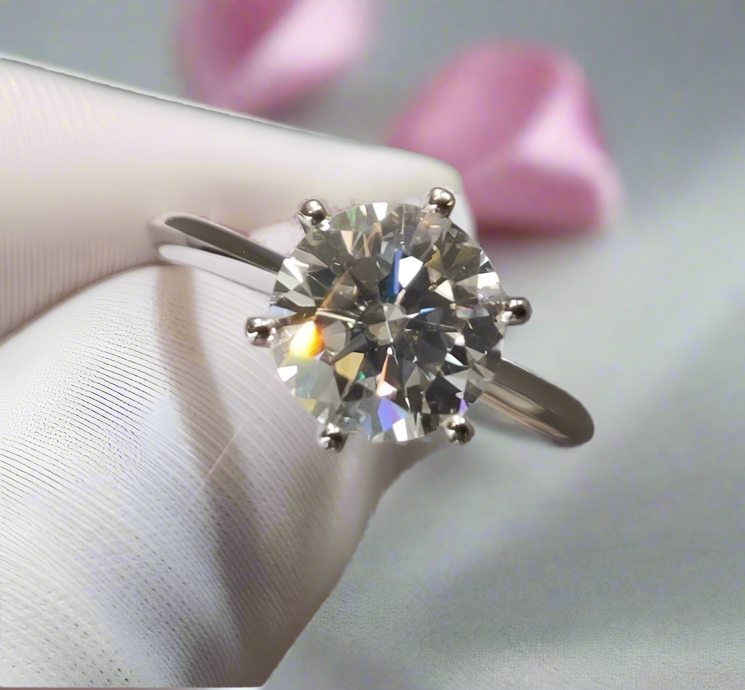 2 Carat 8mm Round Cut D Color Diamond Engagement Ring