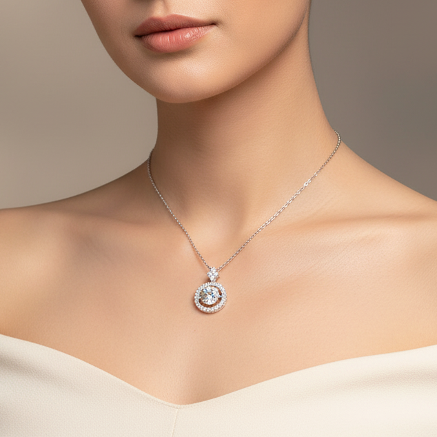 Radiate elegance and sophistication with our Certified Moissanite Necklace with Twinkle Setting from Black Diamonds New York. This exquisite piece is adorned with a halo of smaller stones, adding an extra touch of sparkle and glamour. Made with high quality materials, this necklace is both affordable and irresistible. Make a statement with this gorgeous accessory.