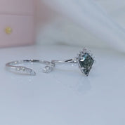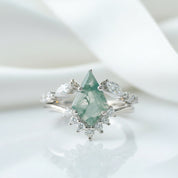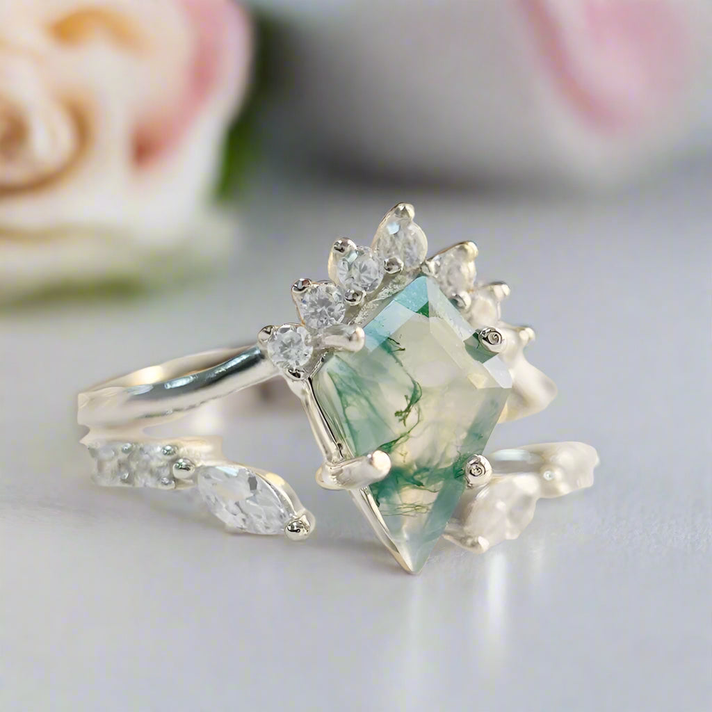 Natural Moss Agate Rhombus Shape Engagement Ring
