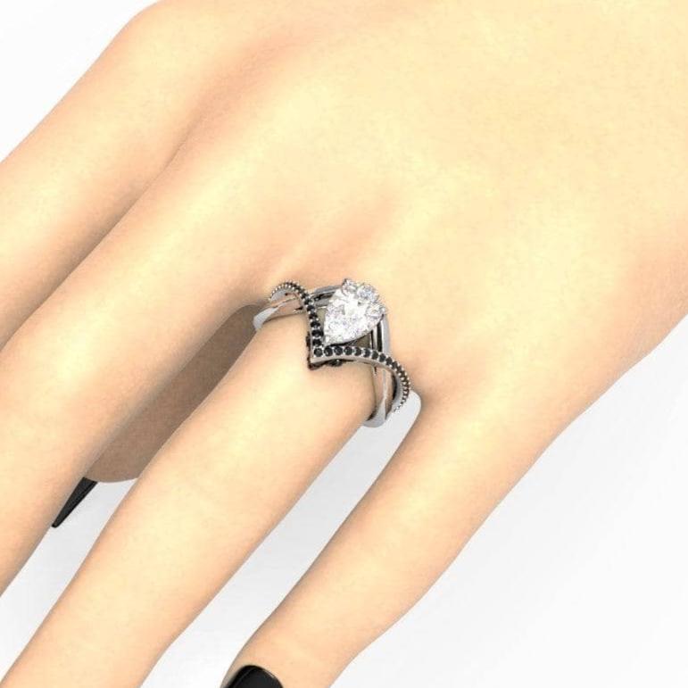 Fall in love with the Only You Gothic Wedding Ring, handcrafted in 14K gold and set with a 1.5-carat pear-cut diamond surrounded by black diamonds. Featuring skull and rose details, this unique design symbolizes eternal love and devotion. Perfect for gothic brides, alternative engagements, and dark romance lovers, it’s a timeless statement of passion meant only for you.