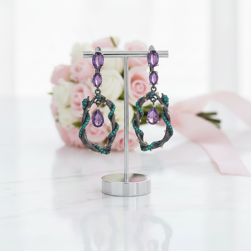 4.34Ct Purple Amethyst Gemstone Earrings