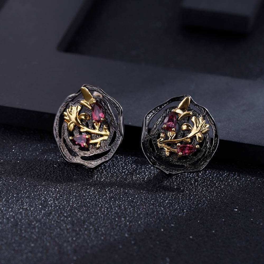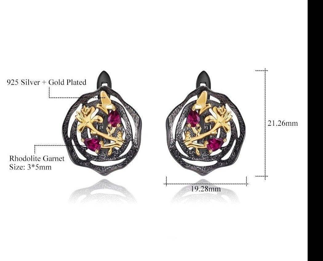Elevate your style with these exquisite Natural Rhodolite Garnet Lotus Earrings. Featuring vibrant rhodolite garnet stones set in high-quality 925 sterling silver, enhanced with a delicate gold plating, these earrings combine elegance and durability for a timeless accessory.