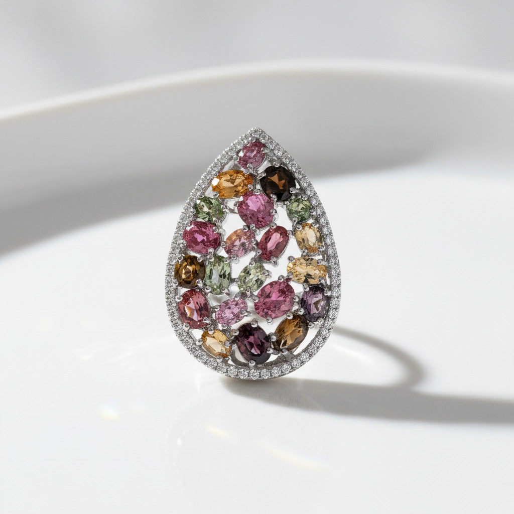 Indulge in luxury with our Tourmaline Jewelry Set by Black Diamonds New York. Crafted with care and precision, this set features a necklace, ring, and earrings that are as stunning as they are affordable. The high quality natural tourmaline stones used in these pieces reflect light beautifully, making them the perfect addition to any outfit.