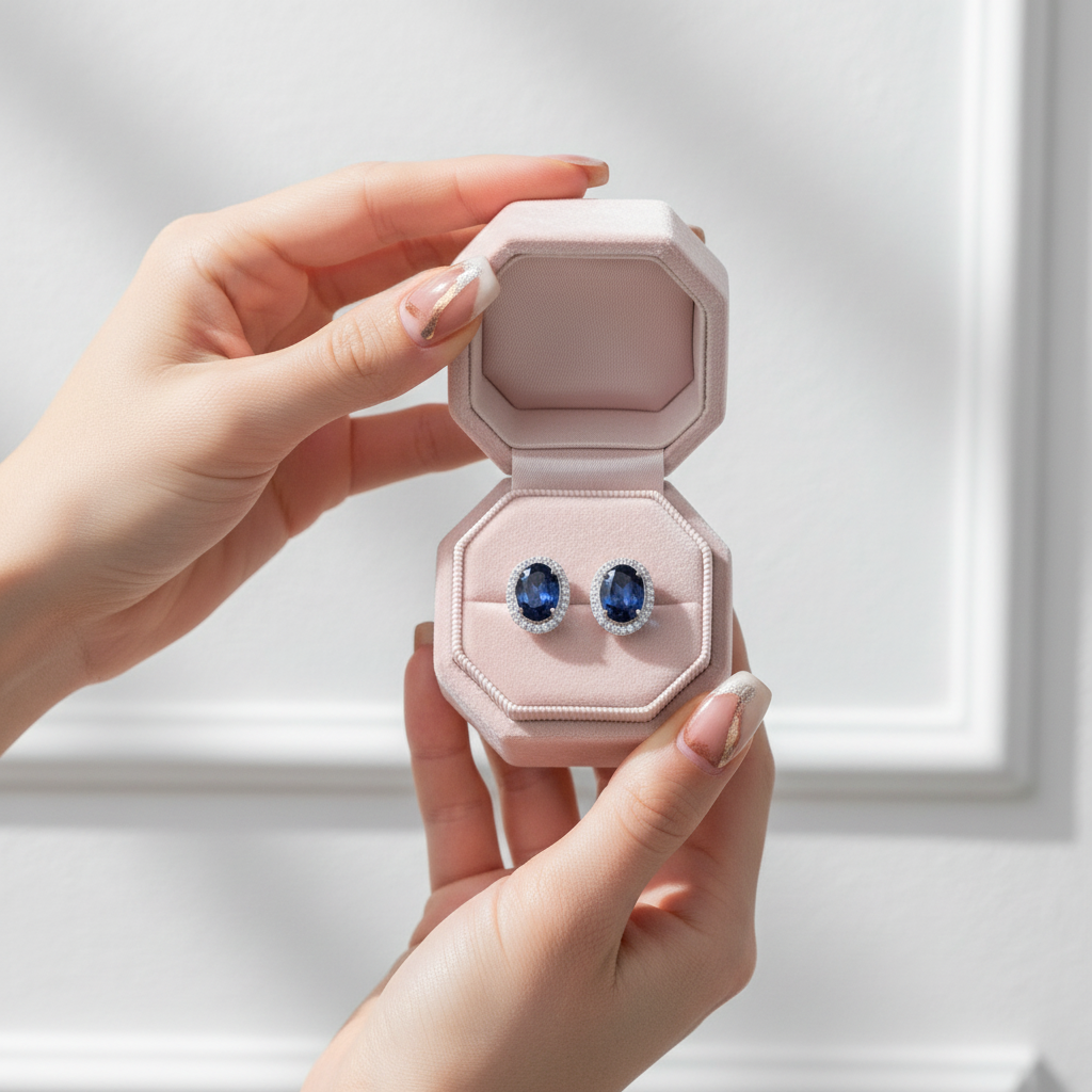 Oval Cut Blue Sapphire Stud Earrings