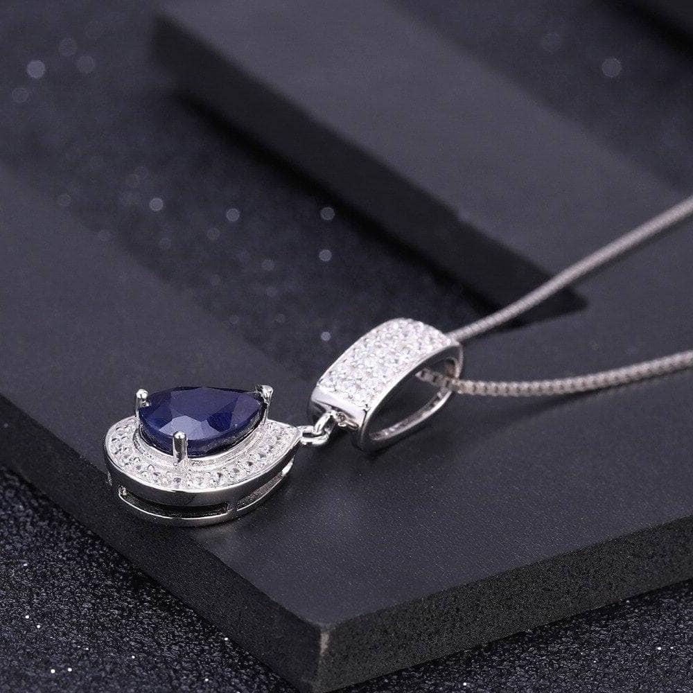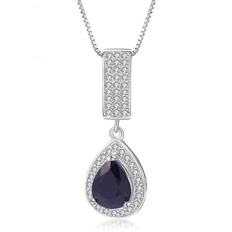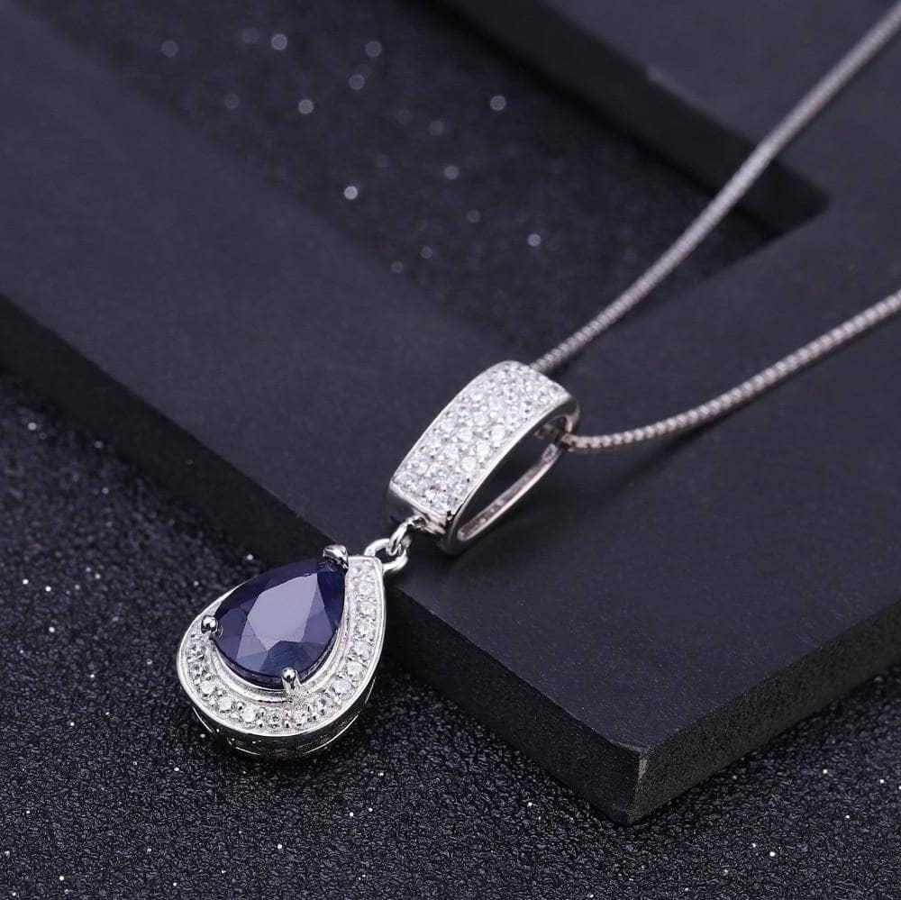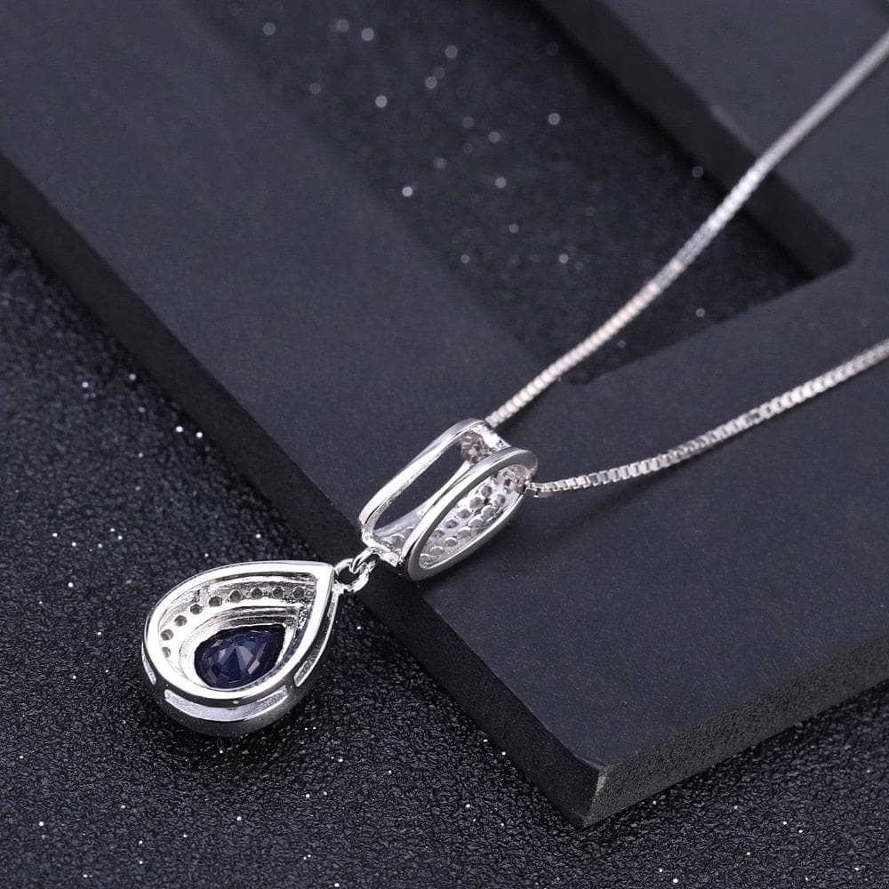 1.29 Ct Natural Water Drop Blue Sapphire Elegant Pendant Necklace