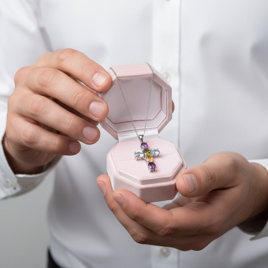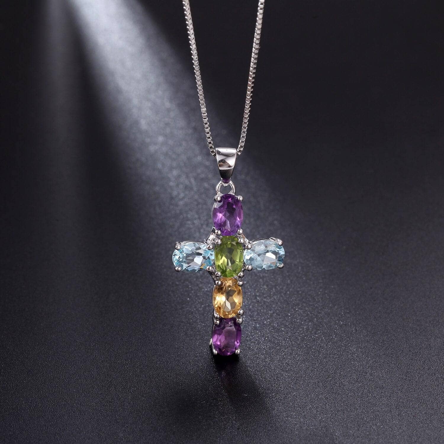 Natural Amethyst with Topaz Gemstone Cross Necklace
