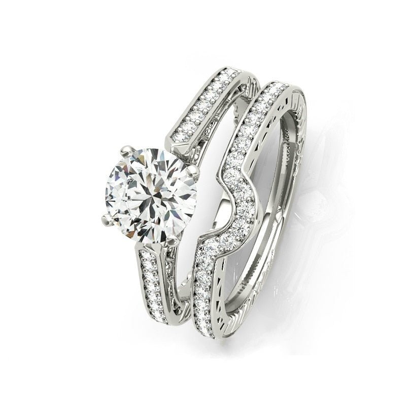 1.0 ct White Gold Round Cut Certified Moissanite Engagement Ring Set