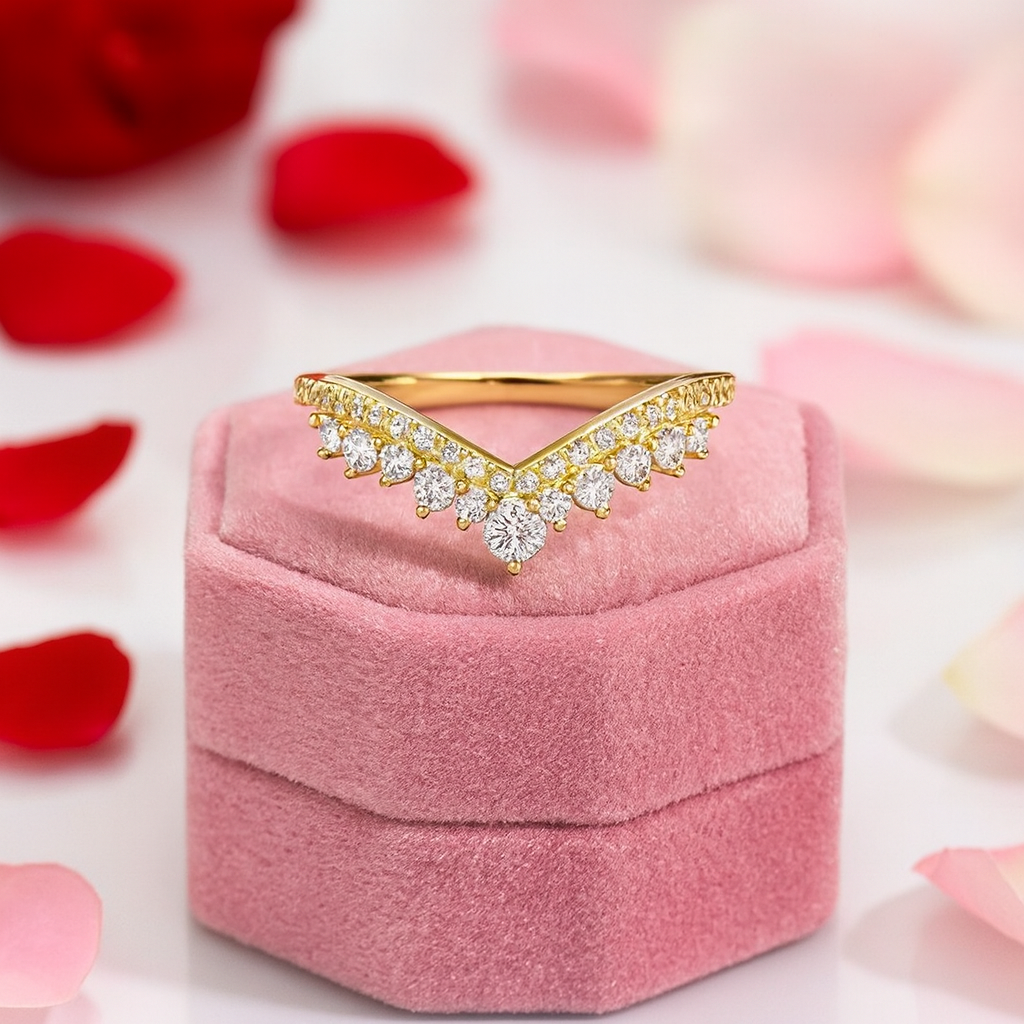 18k Gold Overlay Round Cut Diamond Wish Bone Ring Band