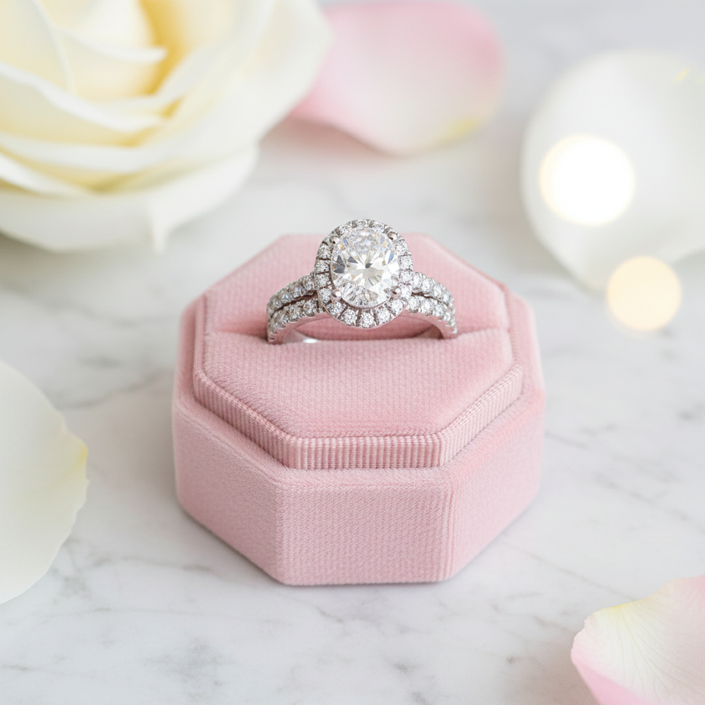 2.0 Ct Oval Cut Diamond Halo Engagement Ring Set
