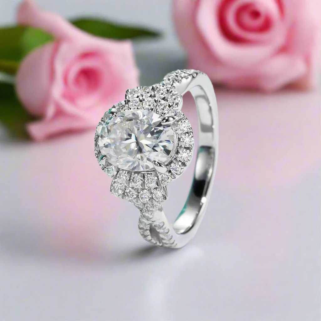 When it comes to finding the perfect engagement ring, our 2ct Oval Cut Halo Certified Moissanite Engagement Ring is the one! Crafted with precision, this ring features a stunning oval-cut moissanite that sparkles and captures attention from every angle. The prong setting ensures that the stone is securely held in place, while the halo design adds an elegant and classic touch. Perfect for the modern and sophisticated bride-to-be, this ring is a true expression of your love and commitment.