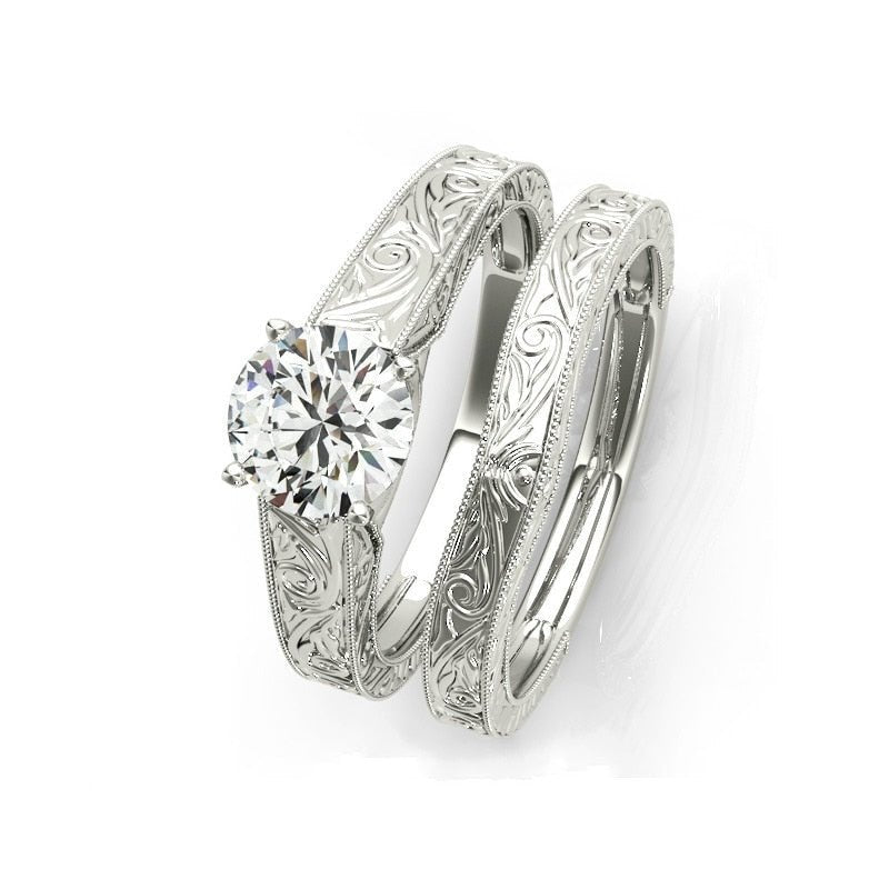 Round Cut Certified Moissanite Art Deco Engagement Ring Set