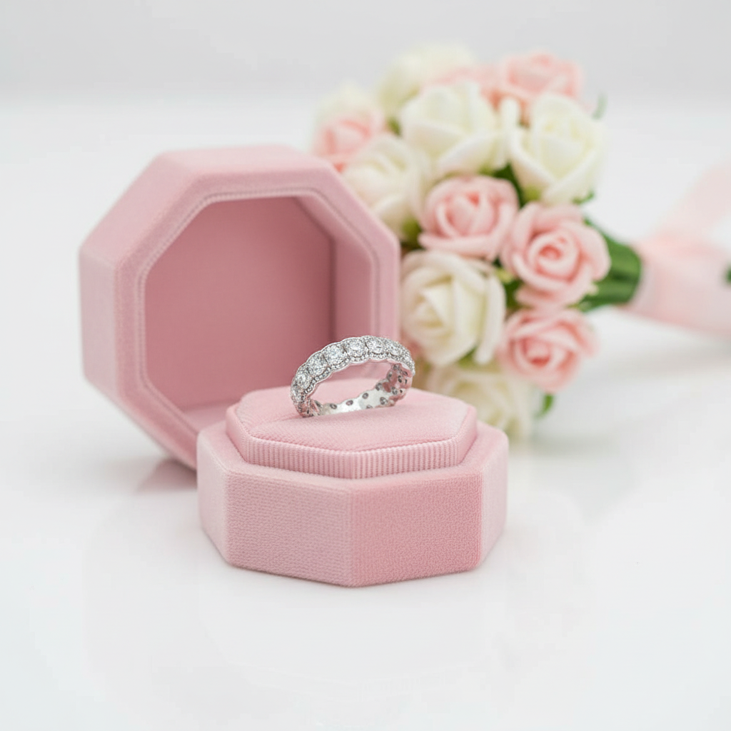 Round Cut Certified Moissanite Eternity Halo Ring Band