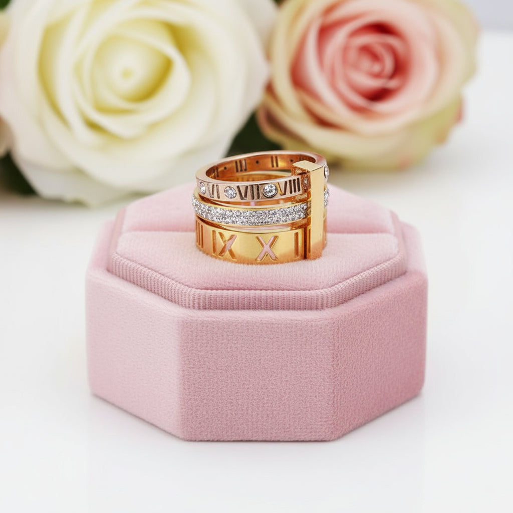 Make a statement with the Three Layers Roman Numerals Diamond Alternative Ring Set. Crafted with precision and attention to detail, this set is a testament to your impeccable taste in jewelry. The round cut Diamond Alternative s catch the light beautifully, while the Roman numerals add a touch of history and culture to your look. Whether you're going for a minimalist or a glamorous look, this set is sure to impress.