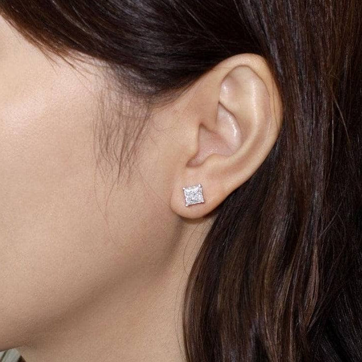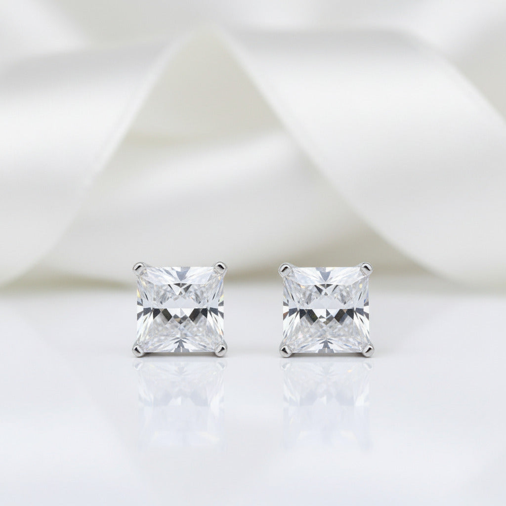 Indulge in the timeless elegance of 1ct Princess Cut Diamond Stud Earrings. Impeccably crafted with lasting quality and ethically sourced materials. These stud earrings feature a delicate 925 Sterling Silver frame, adorned with a sparkling 6mm x 6mm clear Diamond Alternative in a stunning Princess Cut. Each piece is hallmarked and expertly plated with Rhodium, ensuring a luxurious finish. Securely set in prongs, these earrings exude opulence and sophistication.
